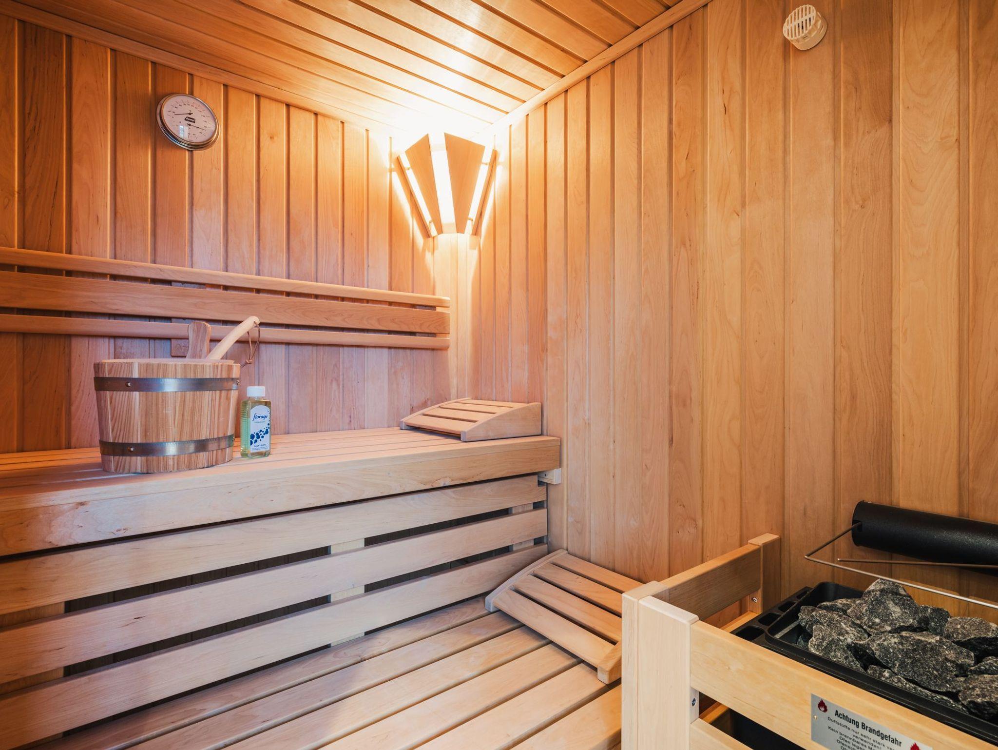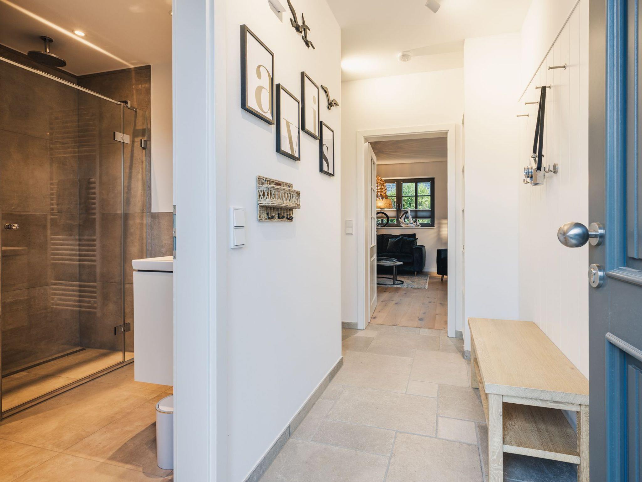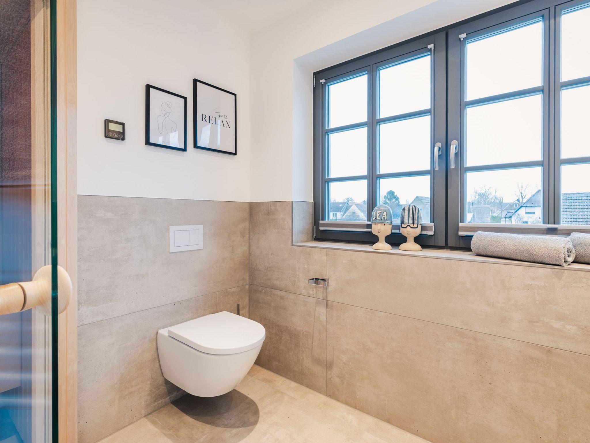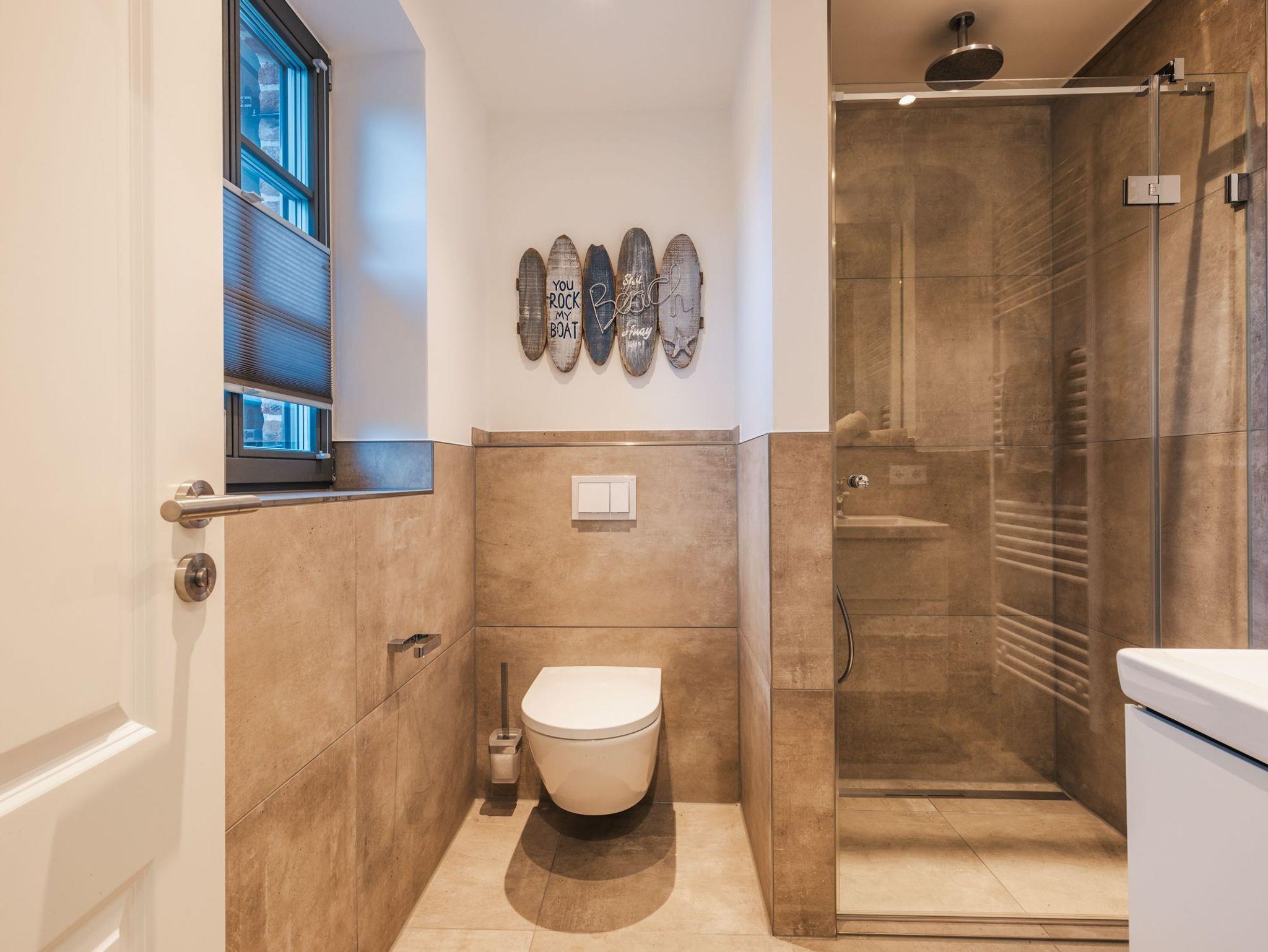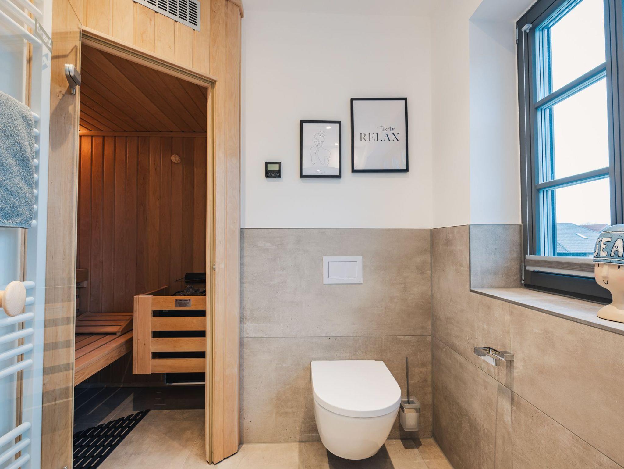Das Ferienhaus verfügt über zwei moderne Badezimmer, die beide mit geräumigen Duschen und hochwertigen Armaturen ausgestattet sind. Das Hauptbadezimmer bietet zusätzlich eine entspannende Sauna, in der Sie die Wärme genießen und neue Energie tanken können.