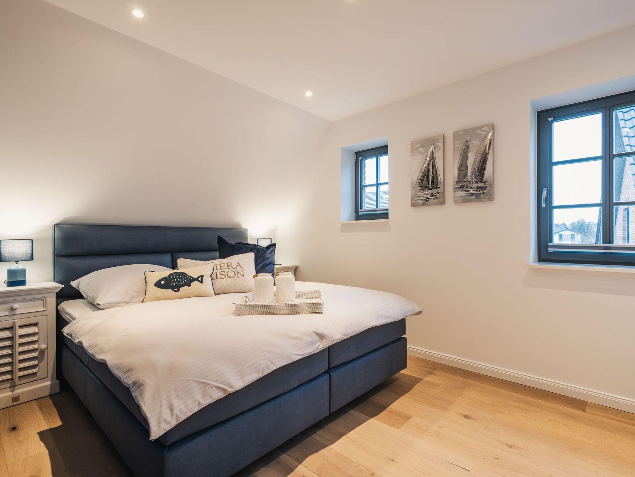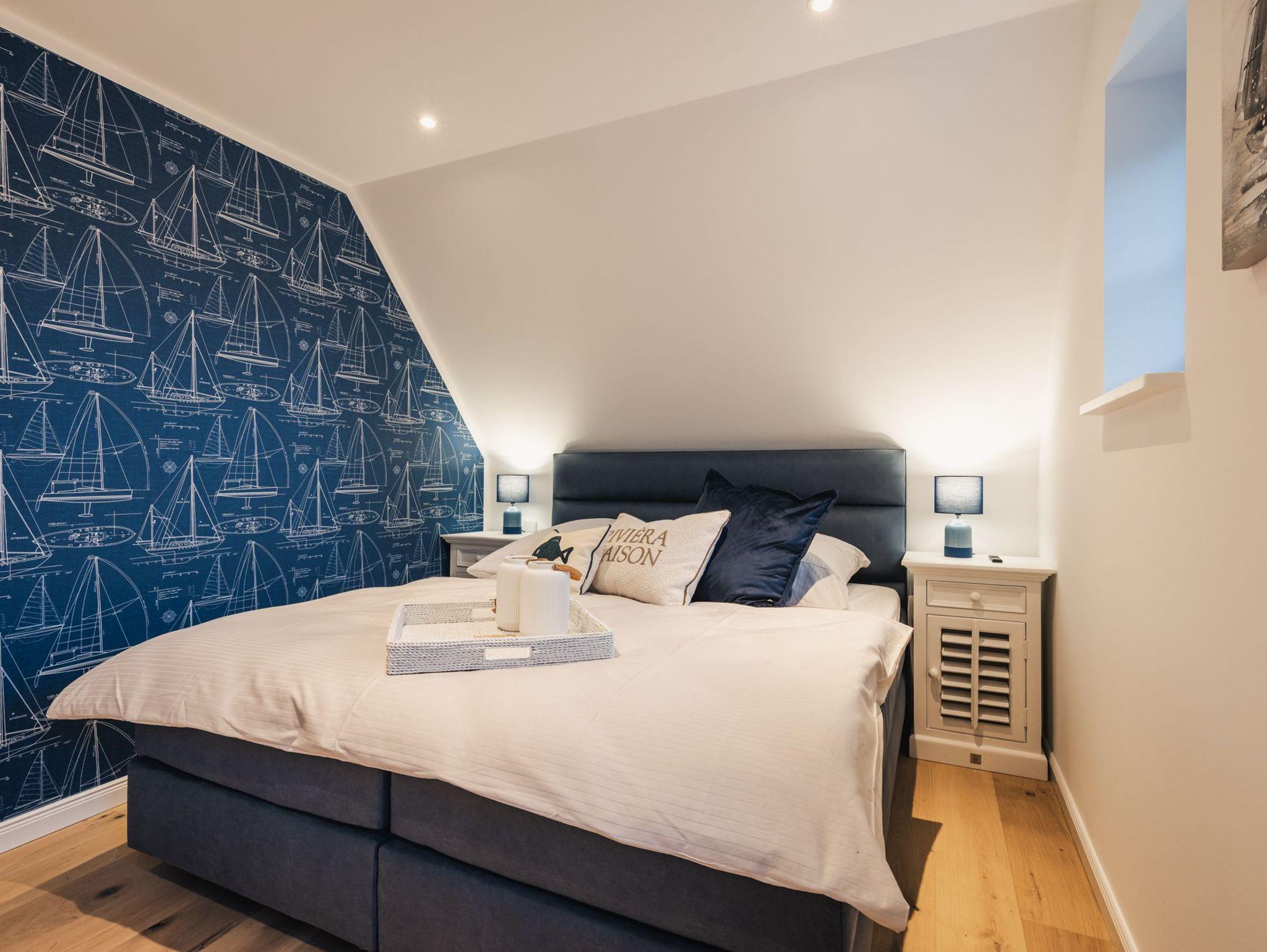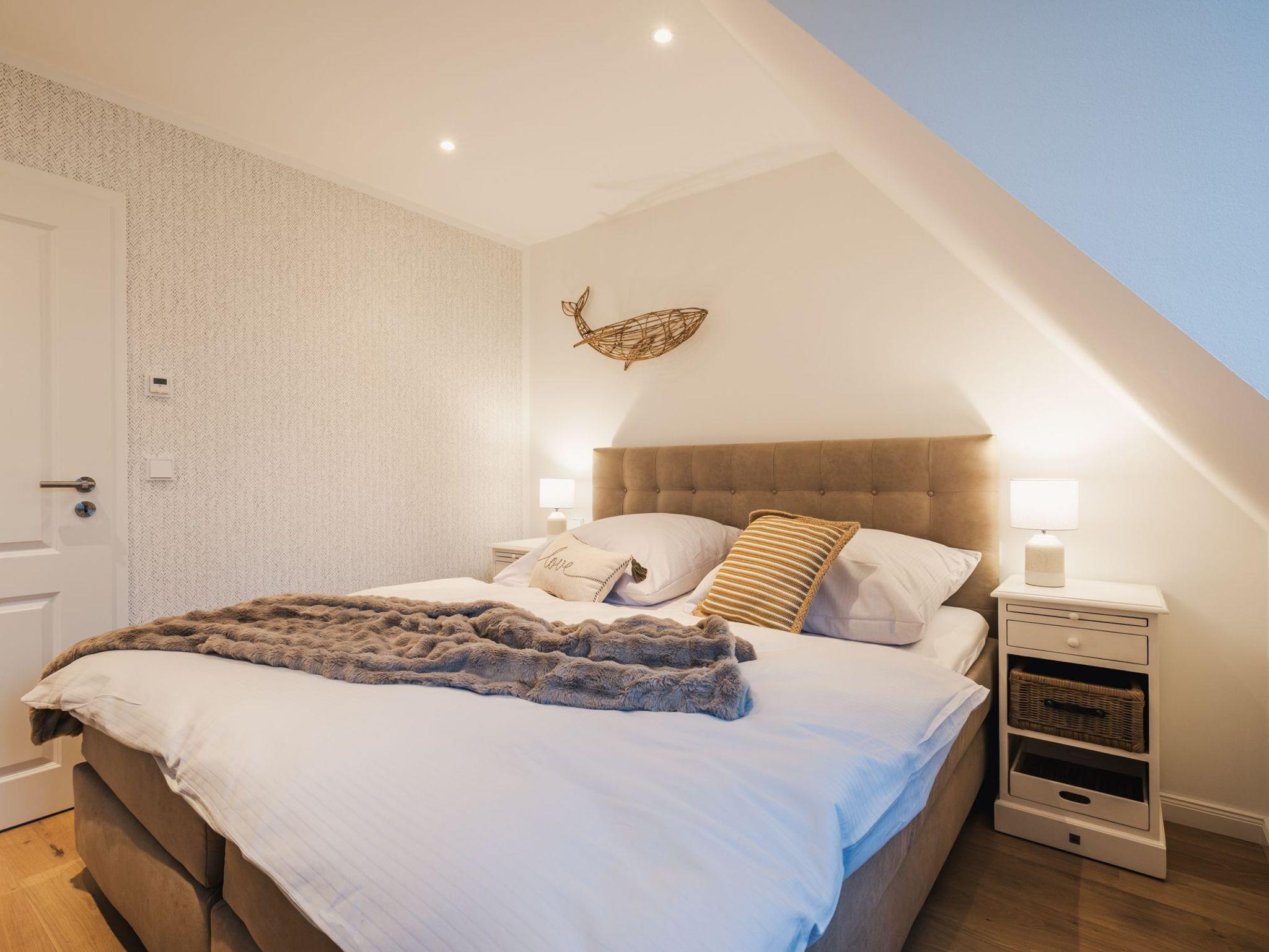 Die drei Schlafzimmer sind mit zwei bequemen Boxspringbetten und zwei Einzelbetten ausgestattet. Verdunkelnde Plissees sorgen für erholsame Nächte, und alle Schlafzimmer bieten ausreichend Stauraum für Ihr Gepäck.