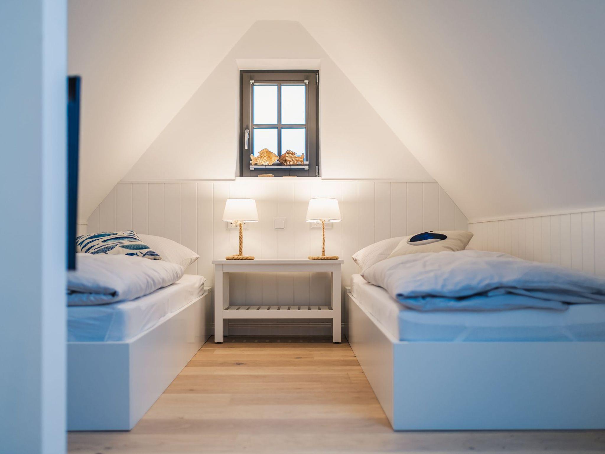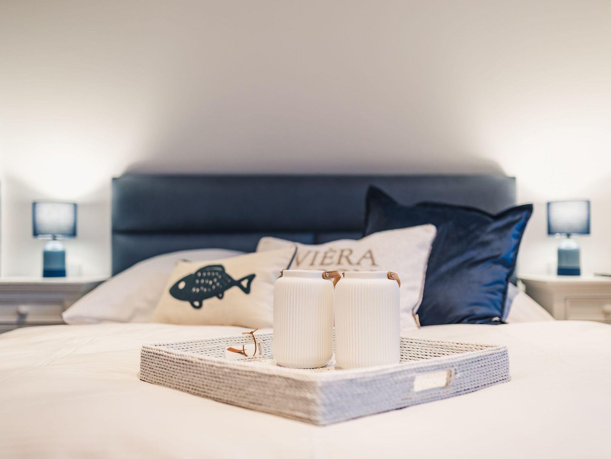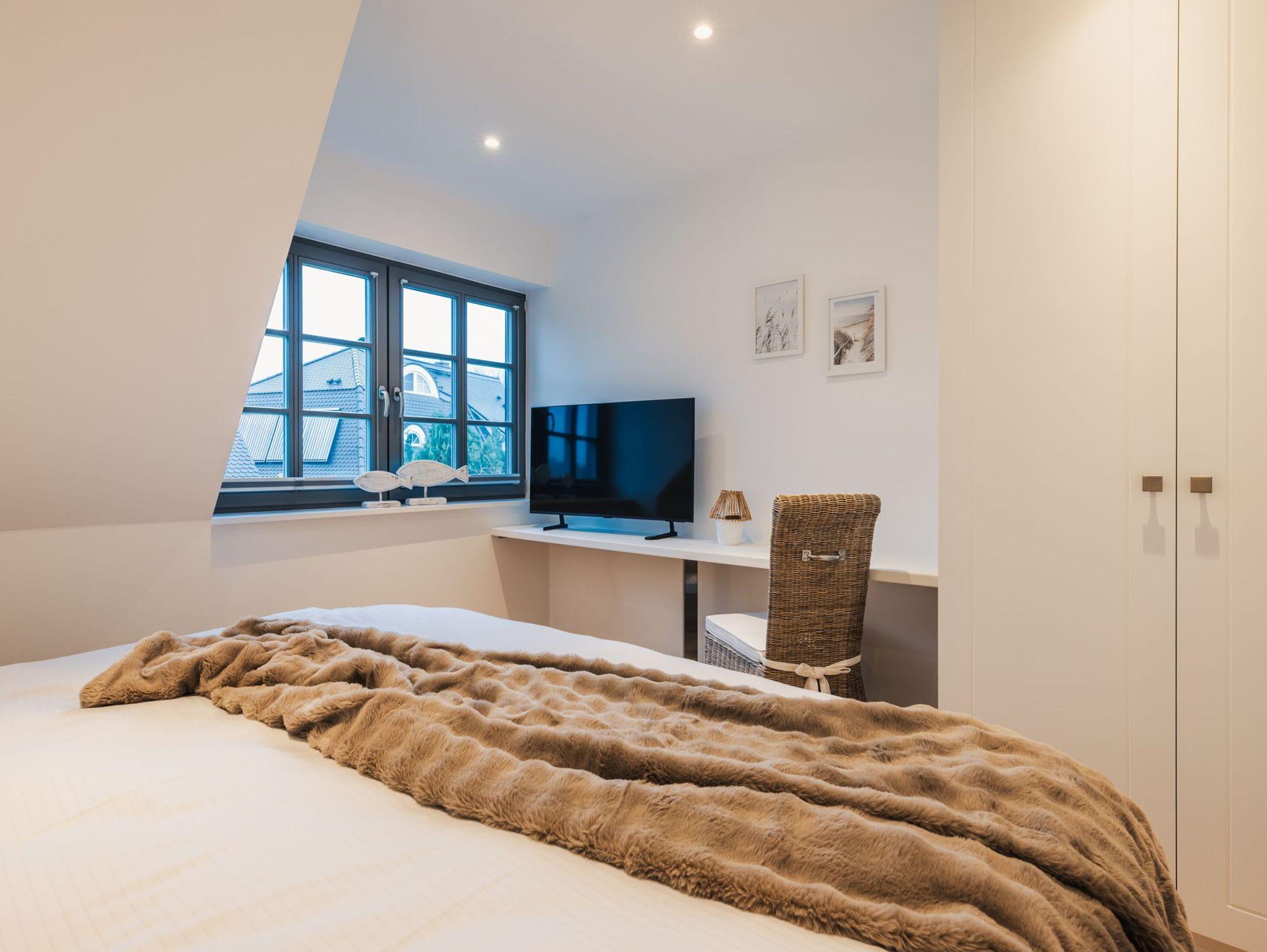 Die drei Schlafzimmer sind mit zwei bequemen Boxspringbetten und zwei Einzelbetten ausgestattet. Verdunkelnde Plissees sorgen für erholsame Nächte, und alle Schlafzimmer bieten ausreichend Stauraum für Ihr Gepäck.
