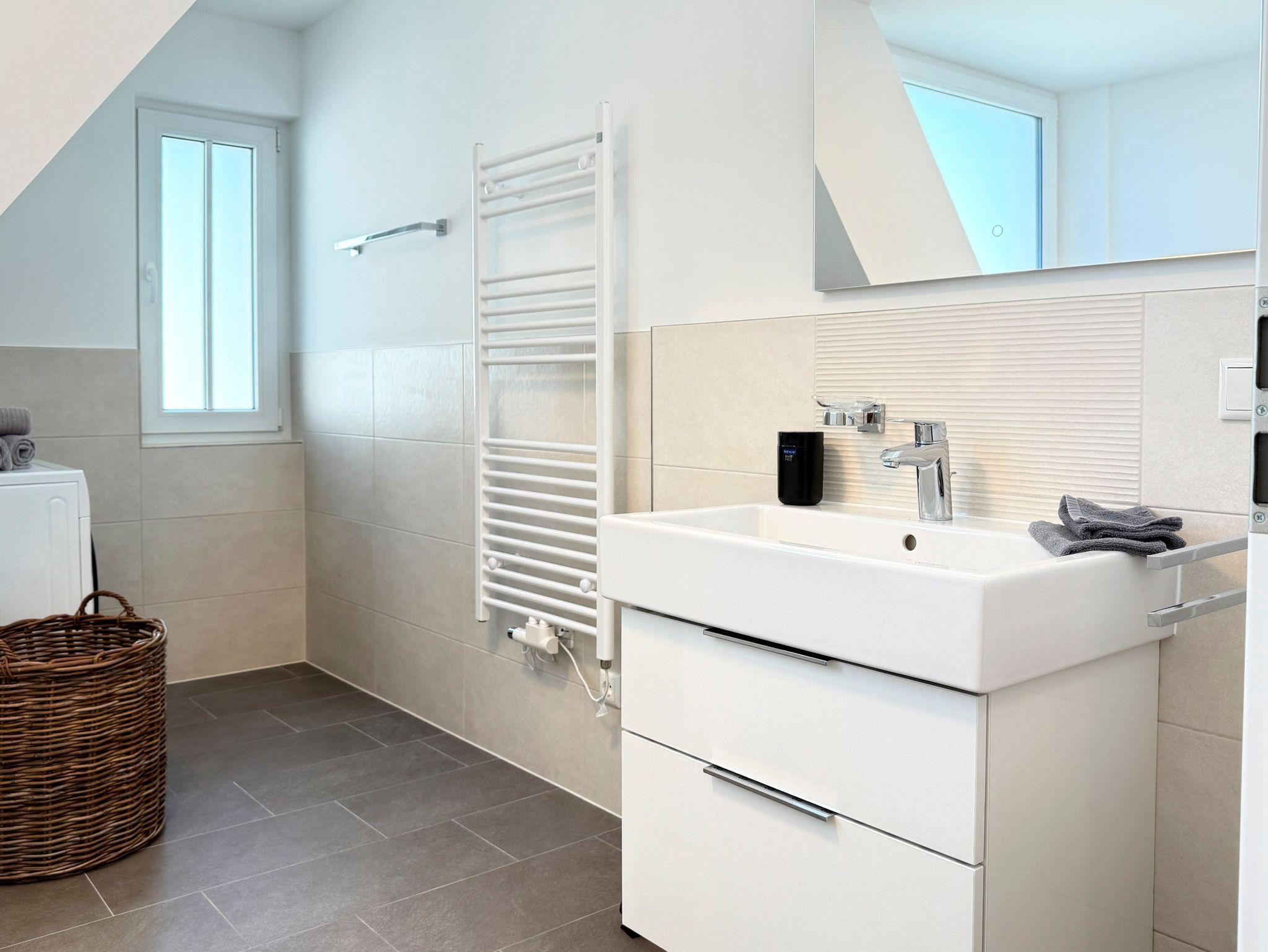 • Modernes Badezimmer mit ebenerdiger Dusche und Fußbodenheizung