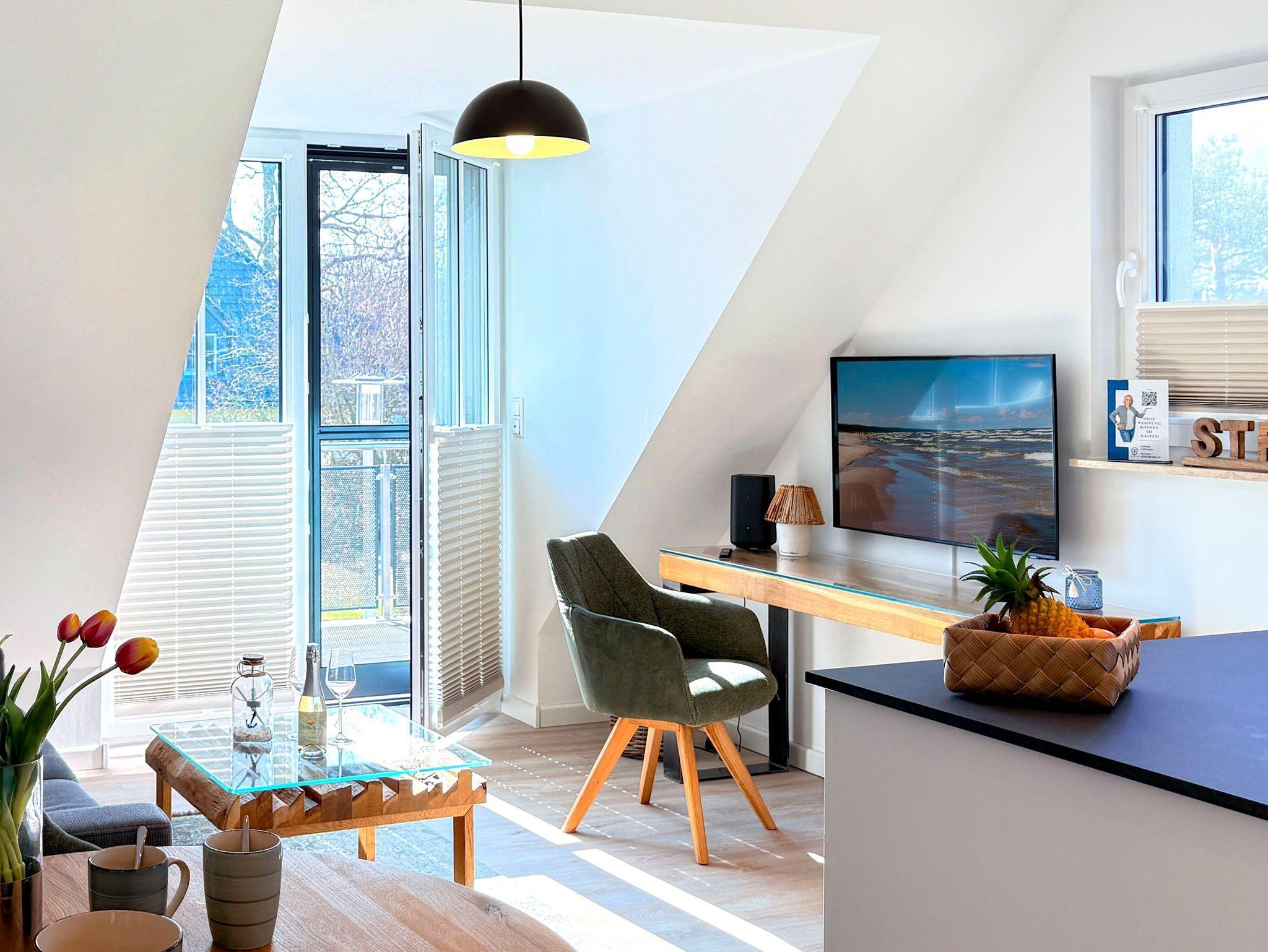 Willkommen in der Ferienwohnung Störtebekerkoje 12/6 in Zingst! Erleben Sie die einzigartige Schönheit der Ostsee-Halbinsel mit ihren weiten Sandstränden, malerischen Dünen und charmanten Fischerorten. Genießen Sie eine erholsame Auszeit an der Ostsee und lassen Sie den Alltag hinter sich. Die stilvoll eingerichtete Ferienwohnung bietet auf 45 m² Platz für bis zu zwei Personen ideal für Paare oder Alleinreisende, die Entspannung suchen.