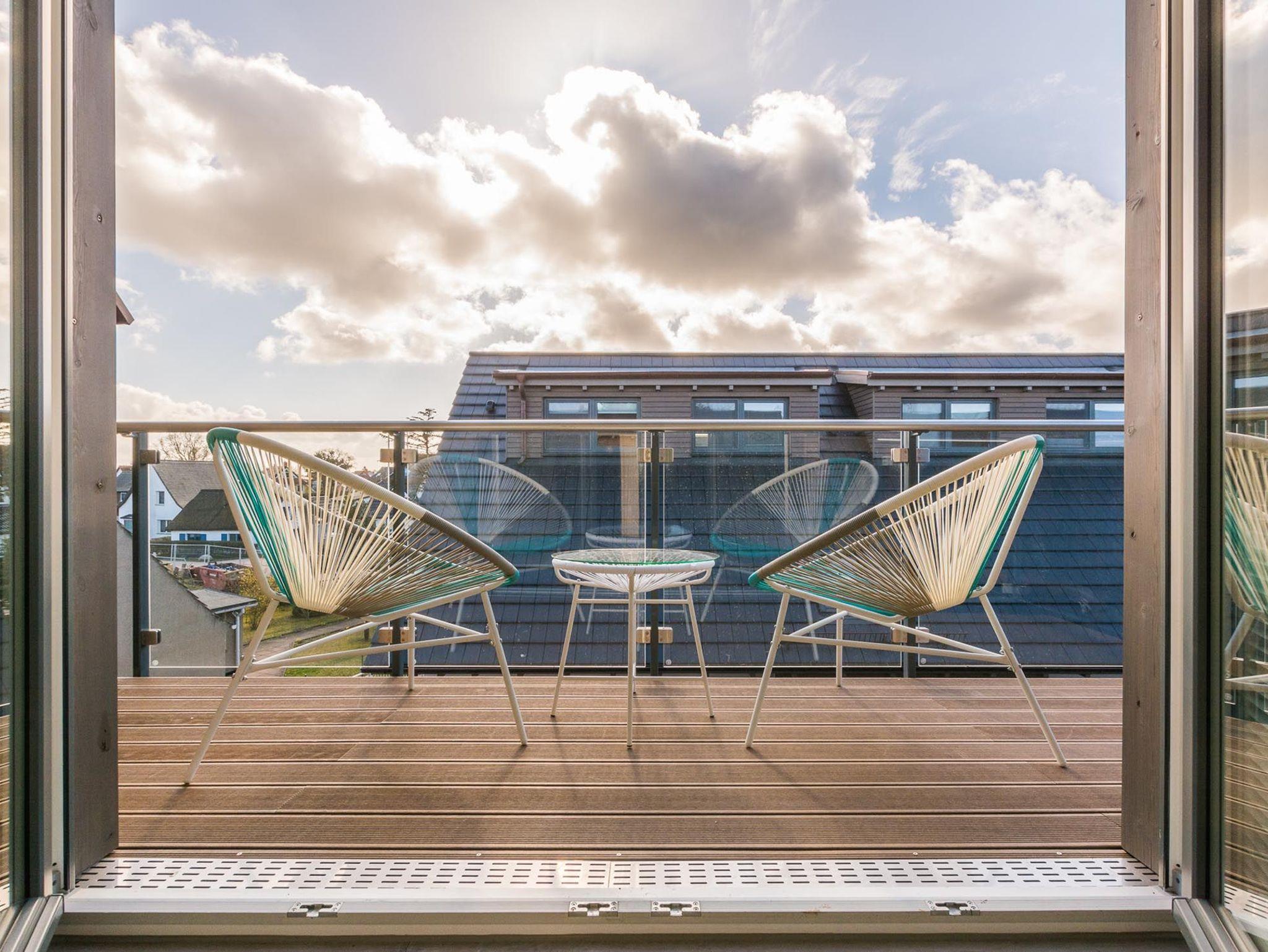 Die Windstille, eine Maisonettewohnung, liebevoll eingerichtet mit Luxuskomfort in Zingst. Sie urlauben in einer 3 Zimmer-Suite, alle Räume sind mit bodengleichen Fenstern und Fußbodenheizung ausgestattet. Die Suite verfügt über einen Wellnessbereich, 2 Badezimmer und 2 Terrassen.