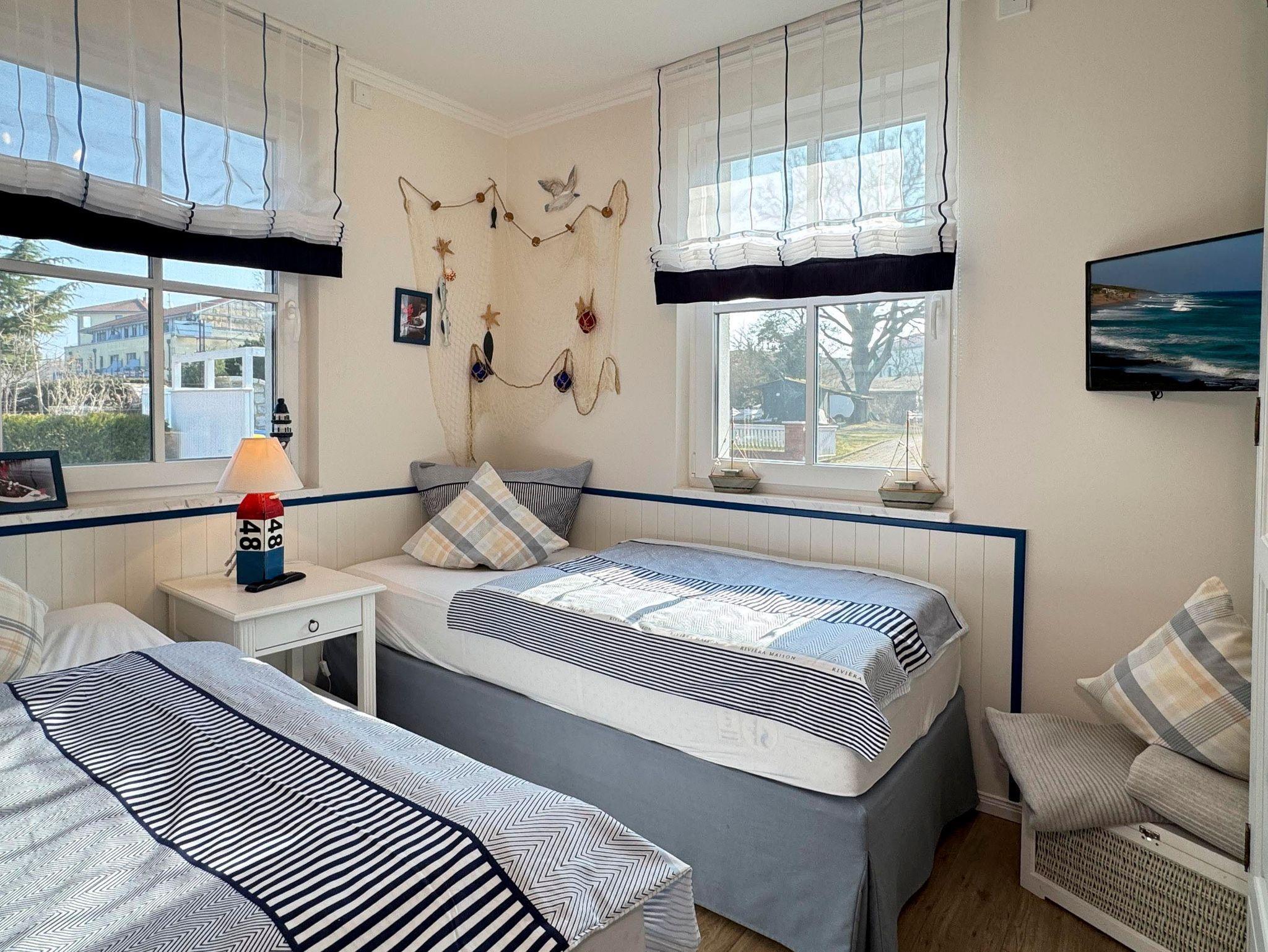 Willkommen in der Ferienwohnung Käpt'n Adi in Zingst! Diese exklusive und liebevoll eingerichtete Unterkunft bietet auf 76 m² Platz für bis zu 4 Personen und verbindet modernen Komfort mit maritimem Flair.