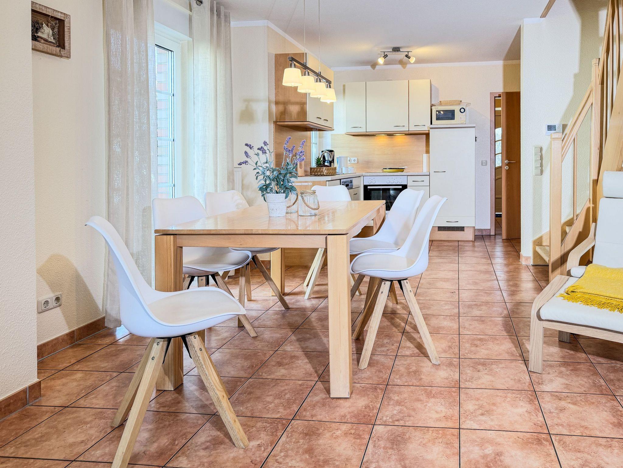 Das Reethus Natalie empfängt Sie mit einer warmen und einladenden Atmosphäre. Der gemütliche Wohnbereich ist das Herz des Hauses und lädt zu entspannten Abenden ein ? sei es bei einem guten Buch oder einem gemeinsamen Spieleabend. Die moderne Küche ist vollständig ausgestattet, sodass Sie mühelos köstliche Mahlzeiten für Ihre Liebsten zubereiten können.