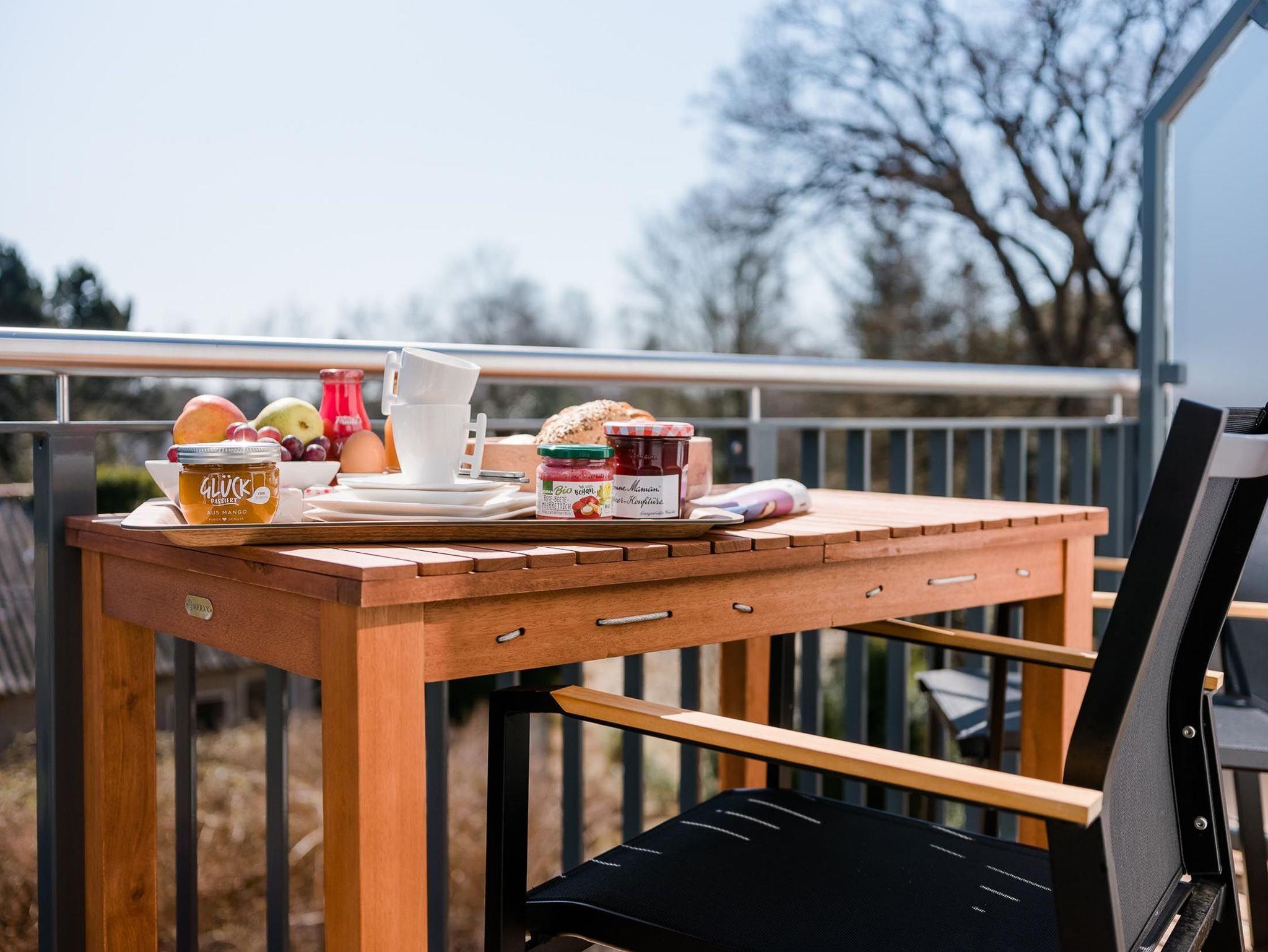 Zur hochwertigen Ausstattung gehören ebenso zwei möblierte Balkone auf denen Sie wunderschöne Sonnenuntergänge mit Blick auf das Meer sowie gen Süden genießen können.