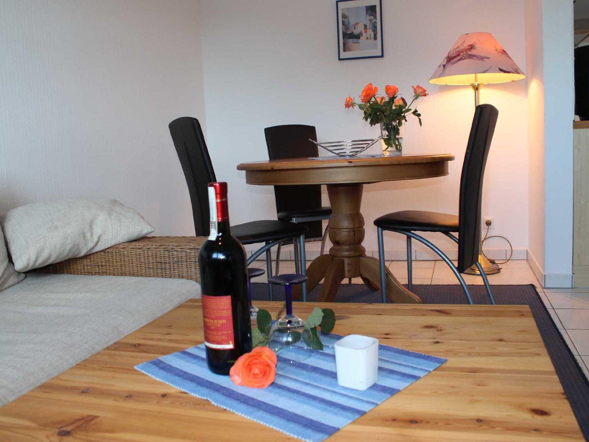 Die Wohnung besteht aus Wohnraum mit integrierter Küche und Essecke, einem Schlafzimmer mit Doppelbett und DU/WC. Die Aufbettung erfolgt auf der Schlafcouch im Wohnbereich ( 1,40 m breit )
