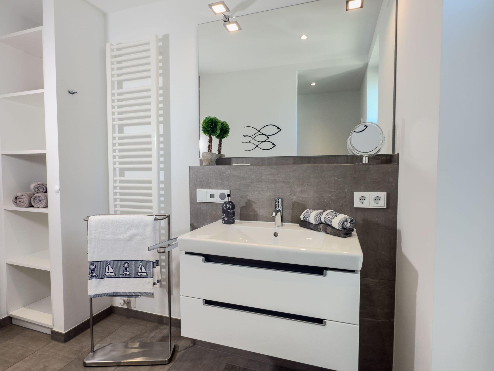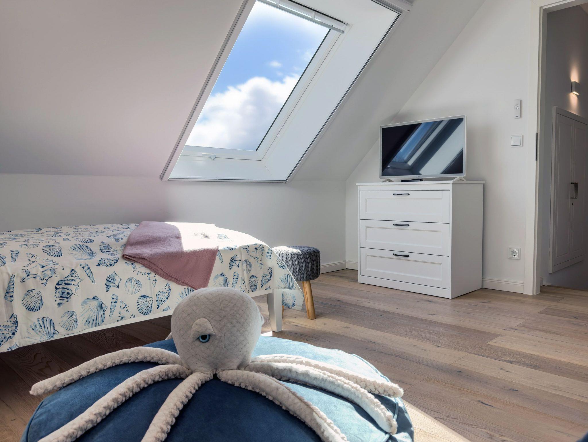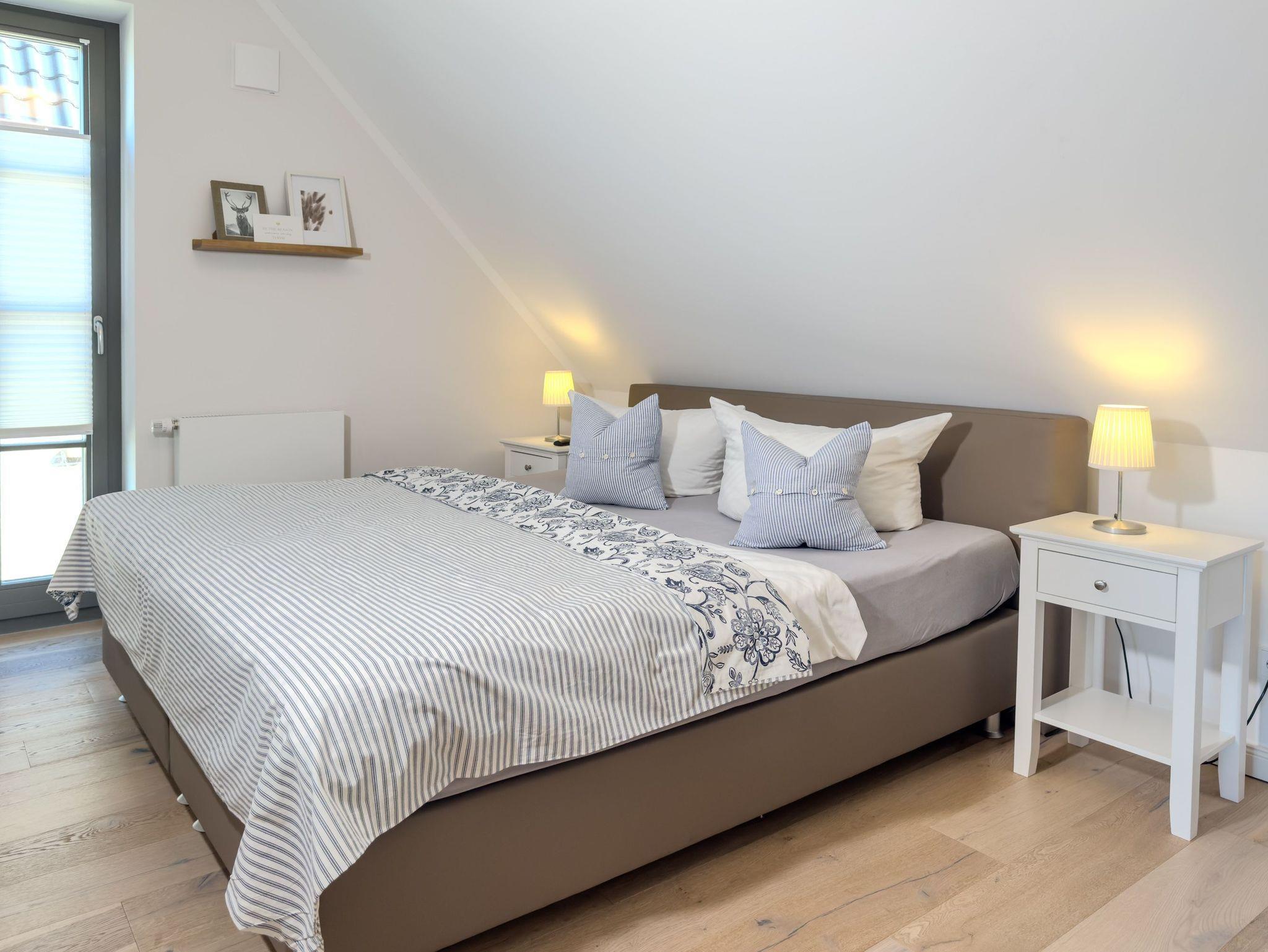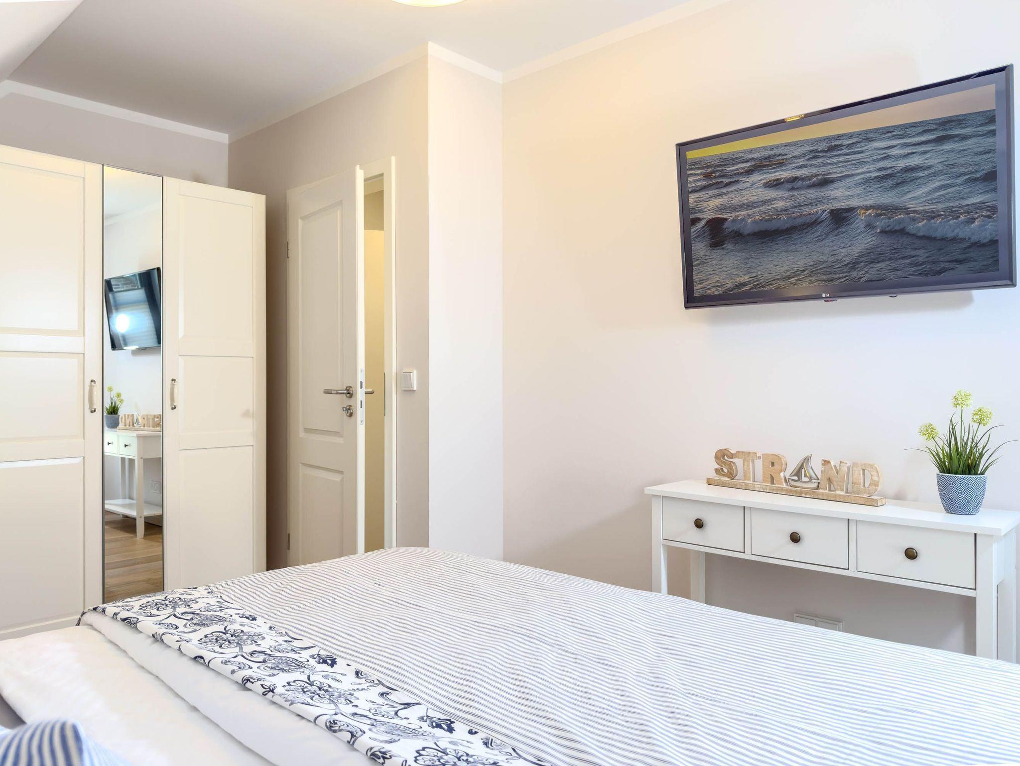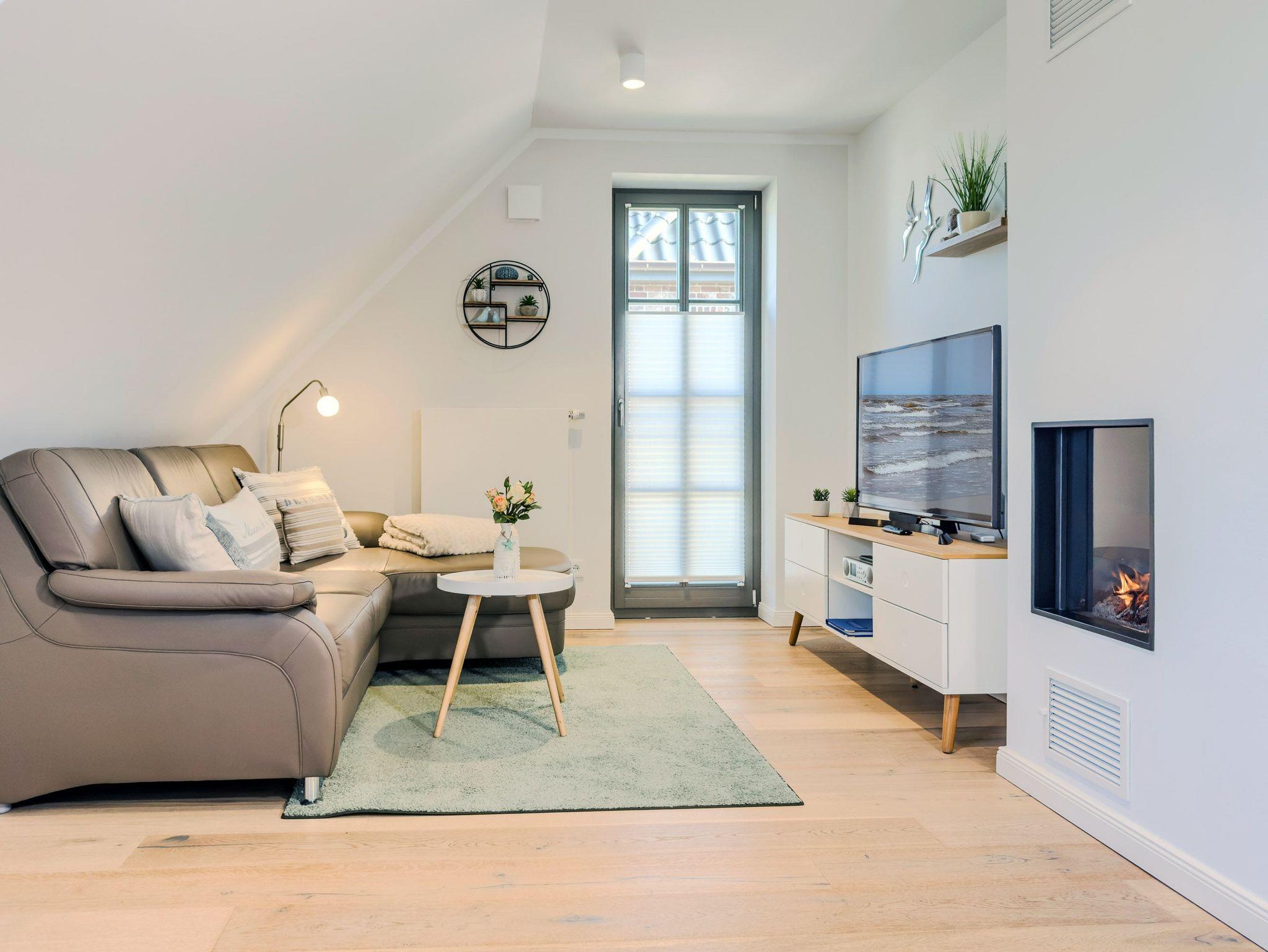 Die Ferienwohnung Strandglück empfängt Sie mit einer modernen und einladenden Atmosphäre. Der offene Wohn- und Essbereich mit Gaskamin bietet den perfekten Ort für entspannte Abende. Die voll ausgestattete Küche verfügt über moderne Geräte wie Backofen, Kochfeld, Geschirrspüler, Mikrowelle, Kühlschrank, Toaster, Wasserkocher und Filterkaffeemaschine, sodass Sie mühelos kulinarische Köstlichkeiten zubereiten können. Die beiden separaten Schlafzimmer sorgen für erholsamen Schlaf.