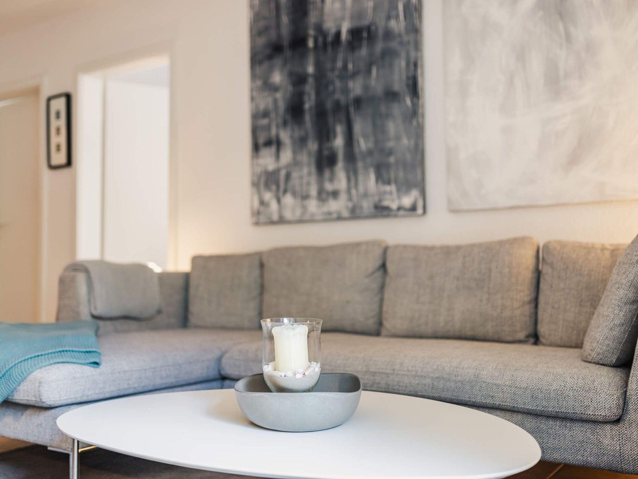 Das Wohnzimmer ist der perfekte Ort, um sich nach einem Tag voller Aktivitäten zu entspannen. Hier können Sie auf dem bequemen Sofa Platz nehmen, einen Film auf dem Flachbildfernseher schauen oder einfach die Aussicht aus den großen Fenstern genießen. Das WLAN ermöglicht es Ihnen, Ihre Ausflüge in der Umgebung zu planen oder einen Tag im Homeoffice zu verbringen. Vom Wohnzimmer aus hat man direkten Zugang zum möblierten Balkon und kann hier wunderschöne Sommerabende verbringen.