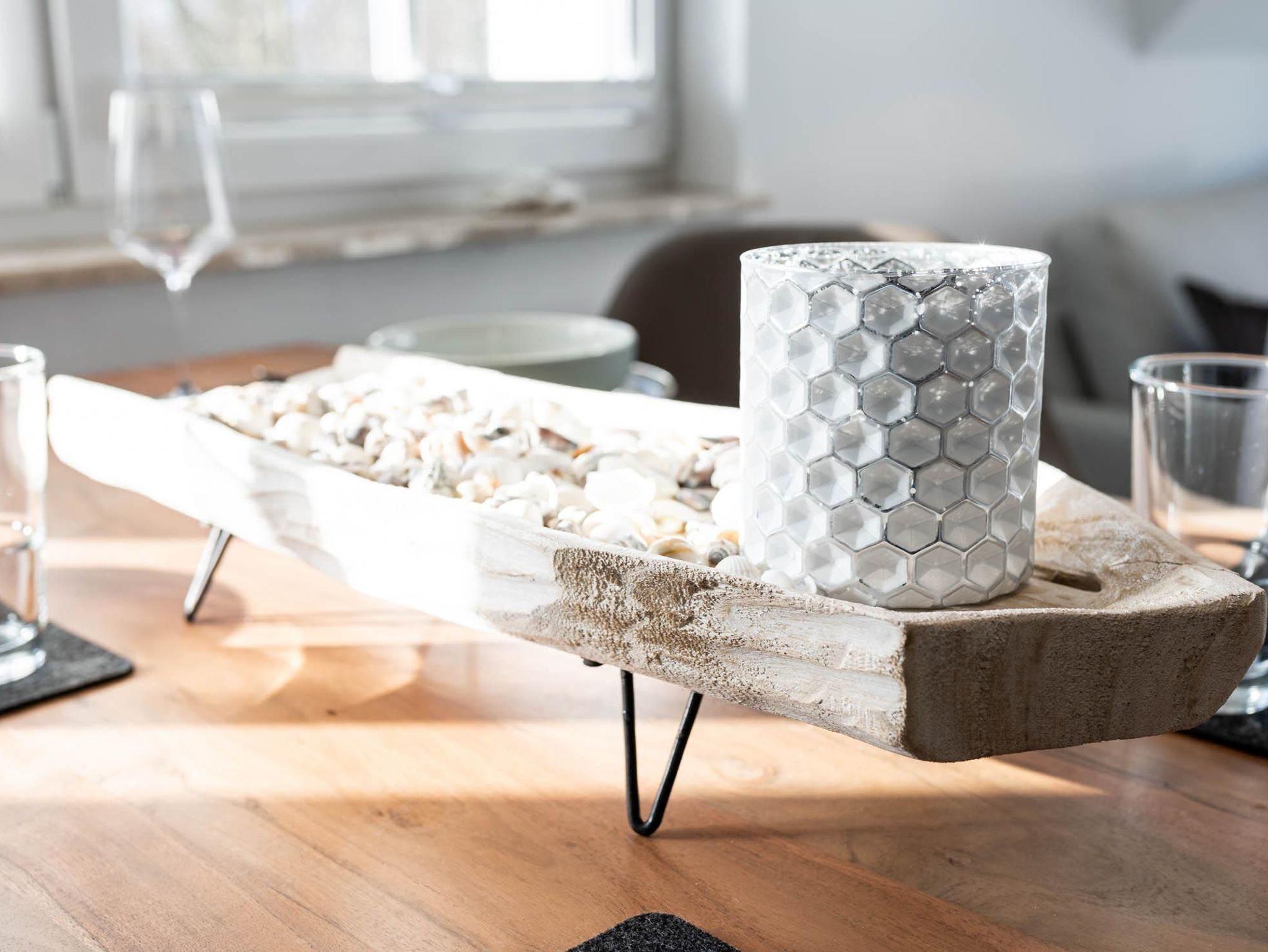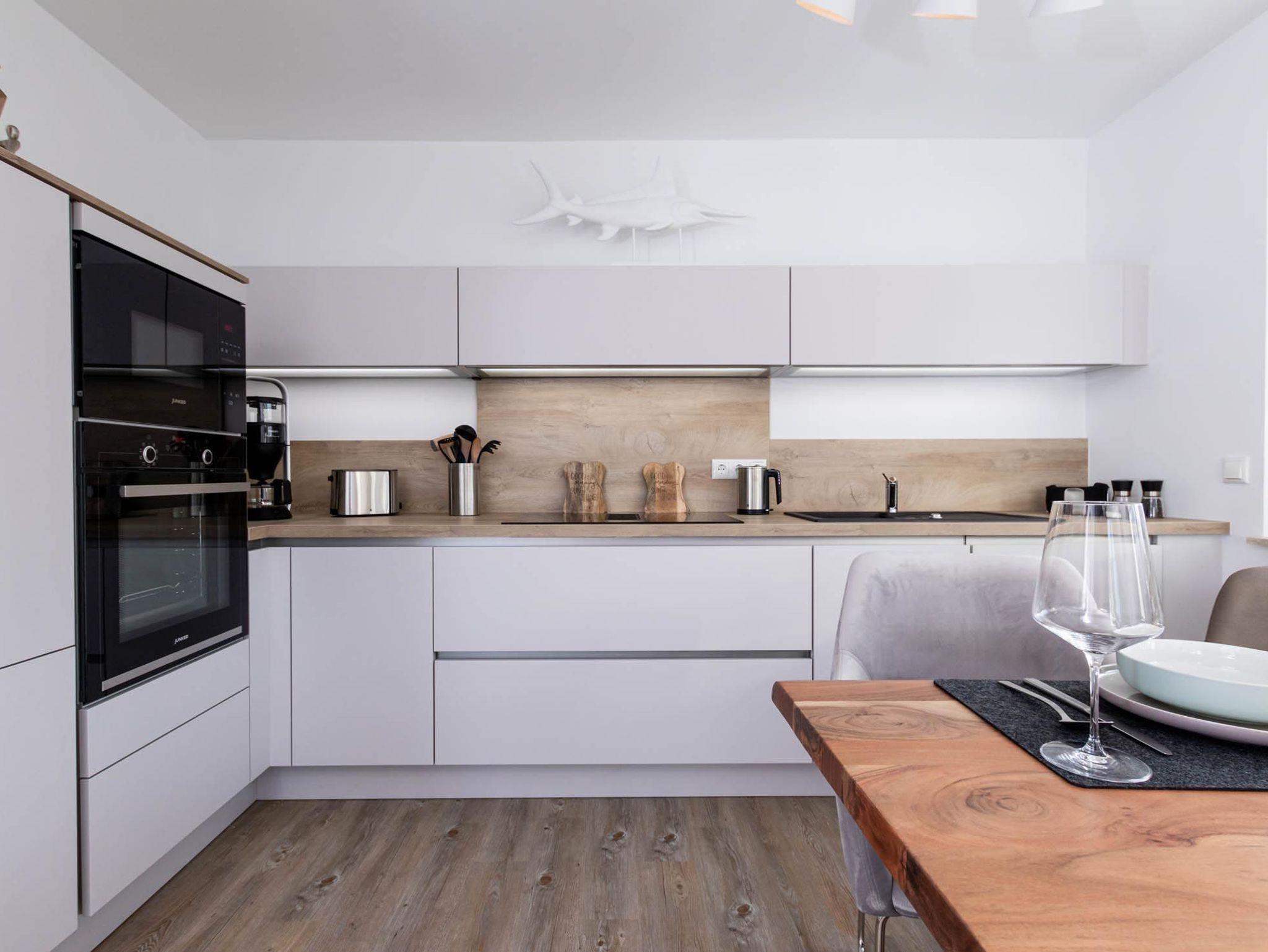 Traumhaftes Maisonette-Appartement in Zingst mit viel Platz für 4 Personen. Der große, helle und freundlich eingerichtete Wohnraum mit Koch- und Essbereich lädt zum Verweilen ein. Die Küche ist mit hochwertigen Elektrogeräten und Küchenutensilien wie Mikrowelle, Wasserkocher, Toaster und Kaffeemaschine ausgestattet. Der Esstisch bietet ausreichend Platz für die ganze Familie. Gerne können Sie das Frühstück bei Sonnenschein auf dem Balkon einnehmen und die Meerluft genießen oder am Abend einfach den Sternenhimmel betrachten.