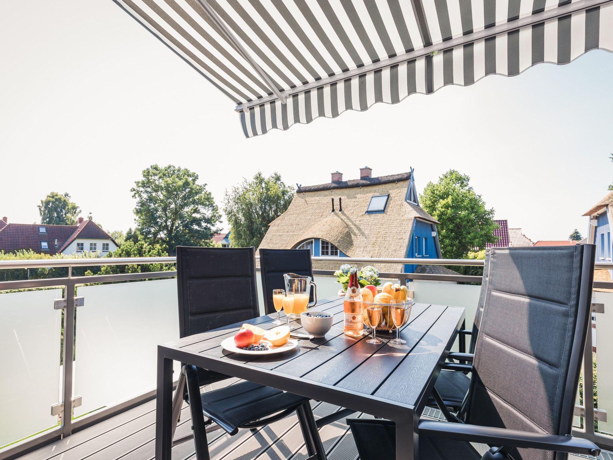 Die Wohnung befindet sich in der ersten Etage des Hauses und hält einen großen Süd- Balkon zum Sonnenbaden bereit. Natürlich steht auch für den gewünschten Sonnenschutz eine Markise sowie ein Sonnenschirm zur Verfügung.