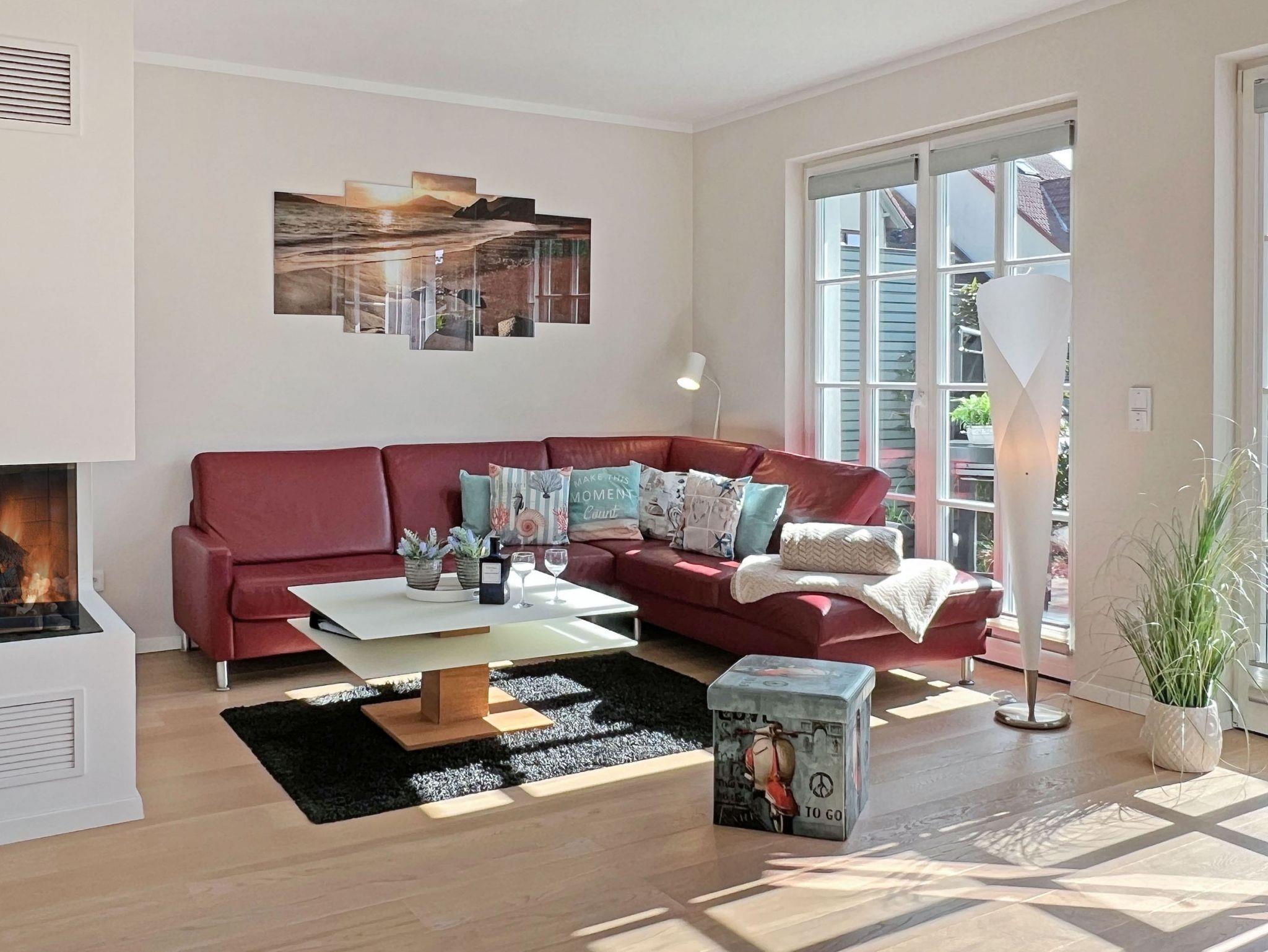 Im stilvoll eingerichteten Wohnzimmer können Sie sich auf der Ledercouch entspannen, während der Gaskamin für behagliche Wärme sorgt. Moderne Unterhaltungsmöglichkeiten wie ein großer Flat-Screen TV, ein DVD-Player und eine Bluetooth-Musikanlage runden das Angebot ab.