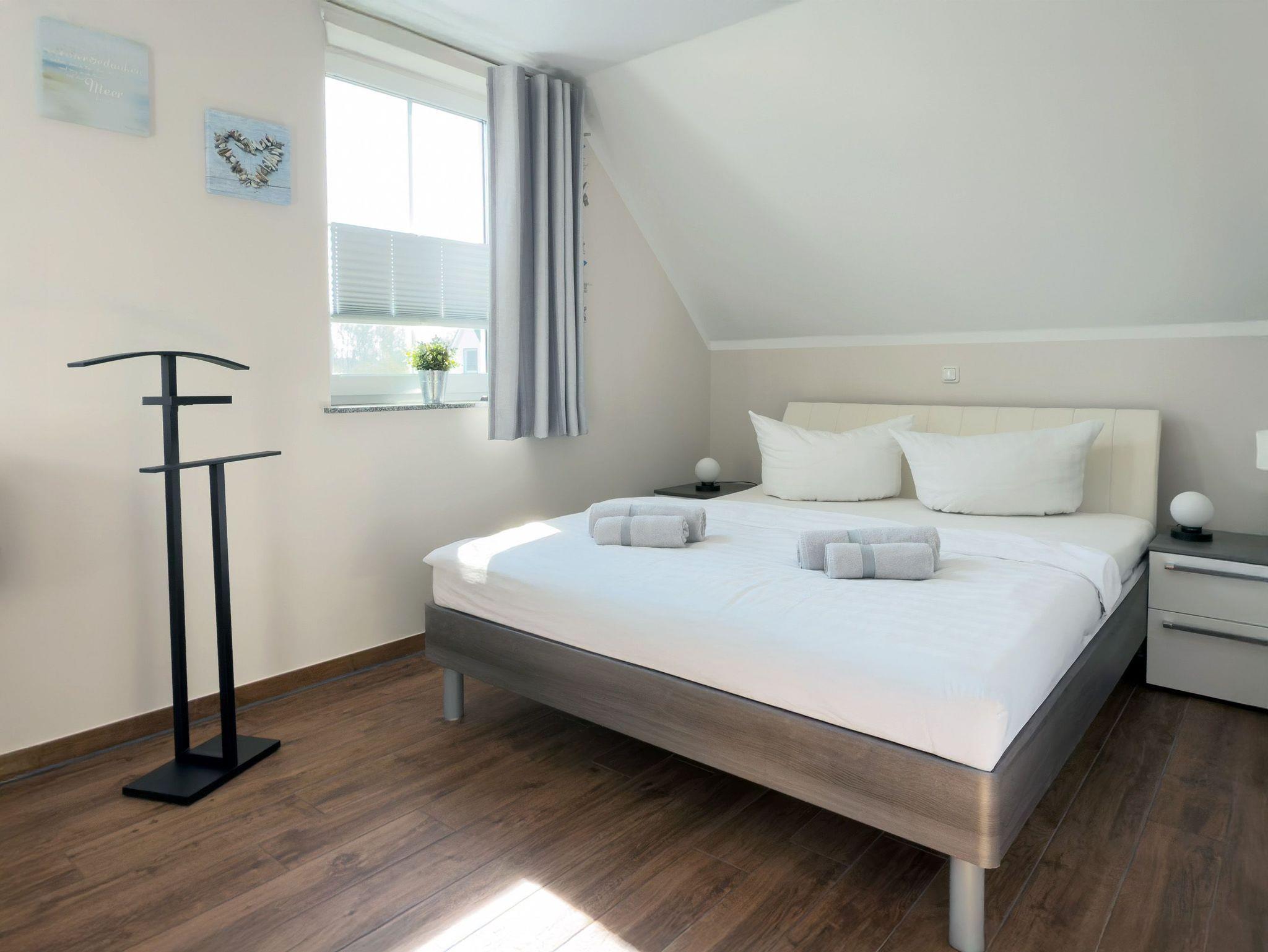 • Vier Schlafzimmer: zwei mit luxuriösen Boxspringbetten, Verdunklungsmöglichkeiten, Fliegengittern und Fernsehern; ein weiteres Schlafzimmer mit Einzelbetten; zusätzliches Dachgeschosszimmer