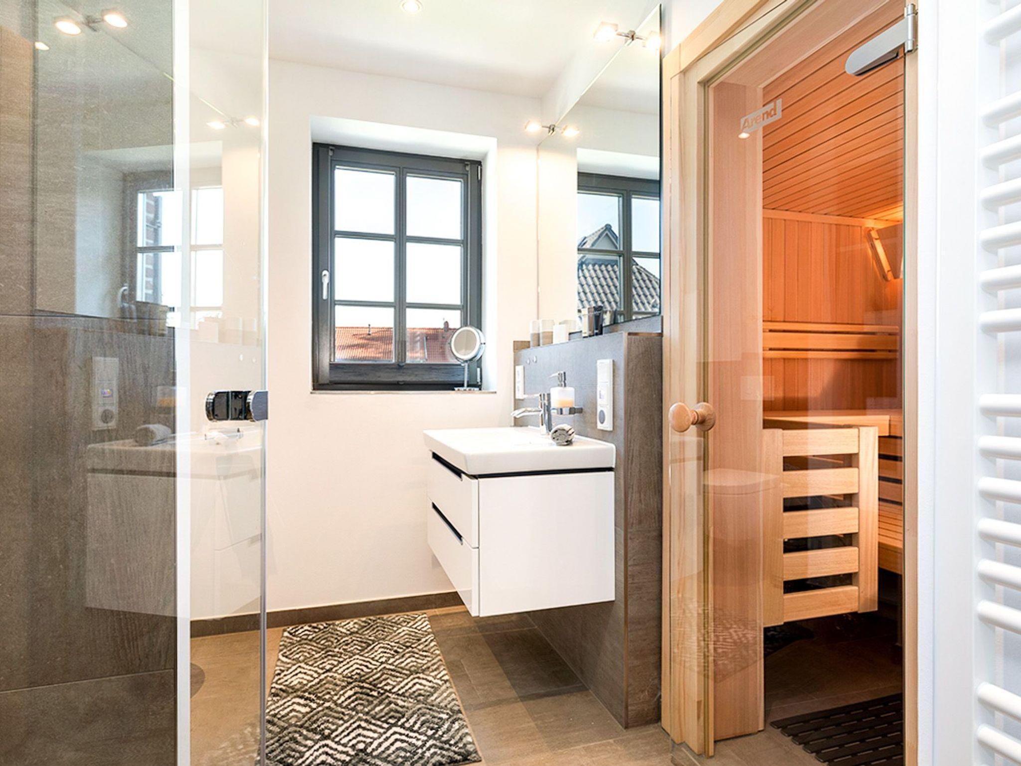 • Zwei Bäder mit begehbaren Duschen, eines mit angrenzender Sauna