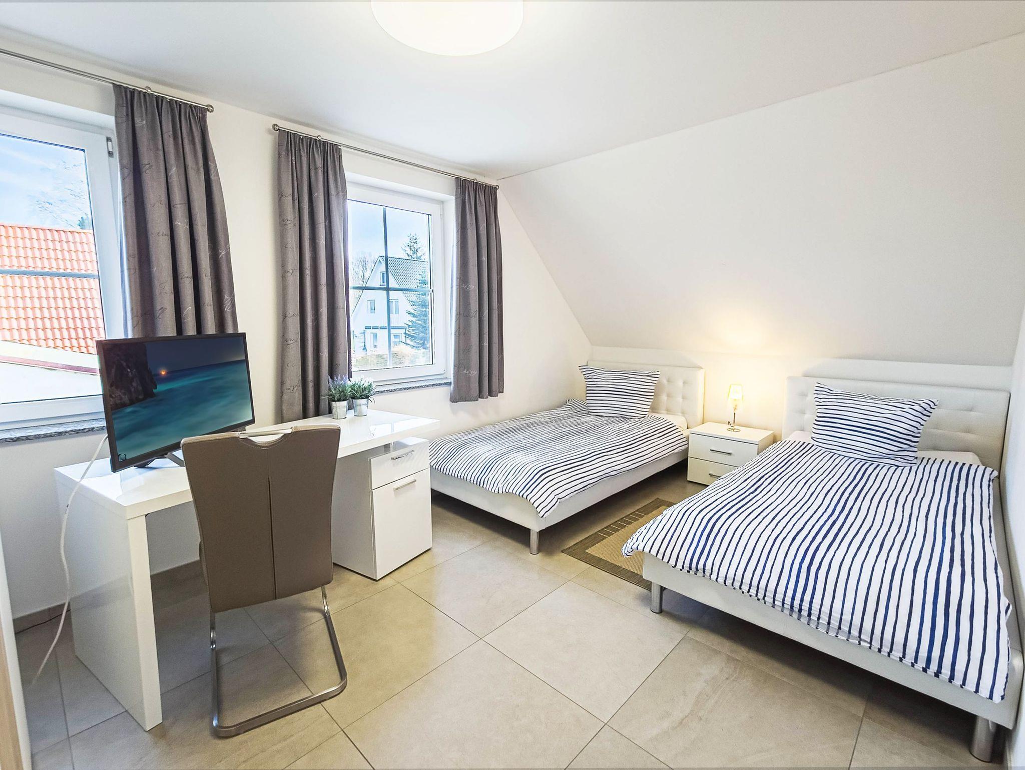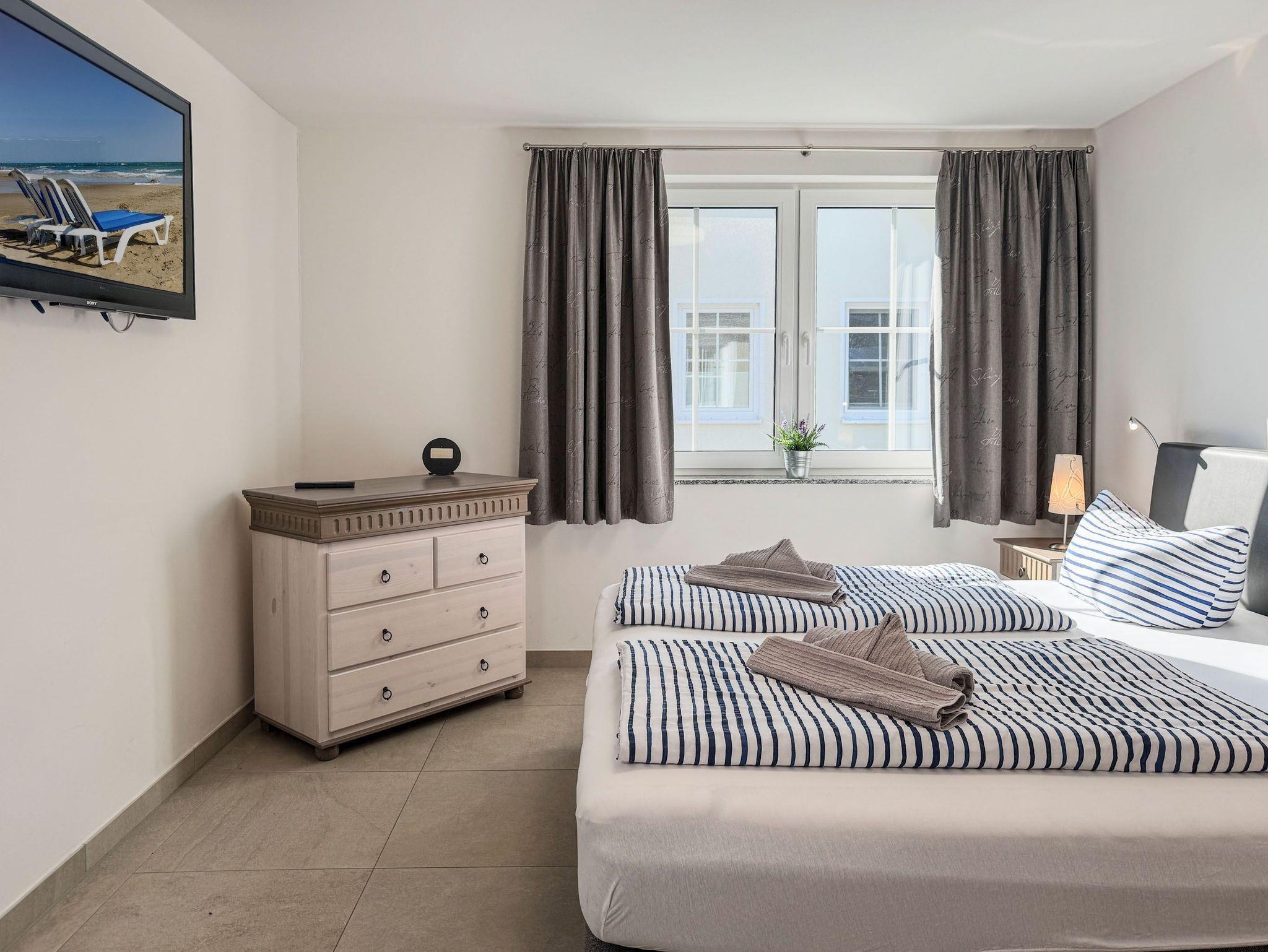 • Vier Schlafzimmer: zwei mit Doppelbetten und TV, zwei mit Einzelbetten