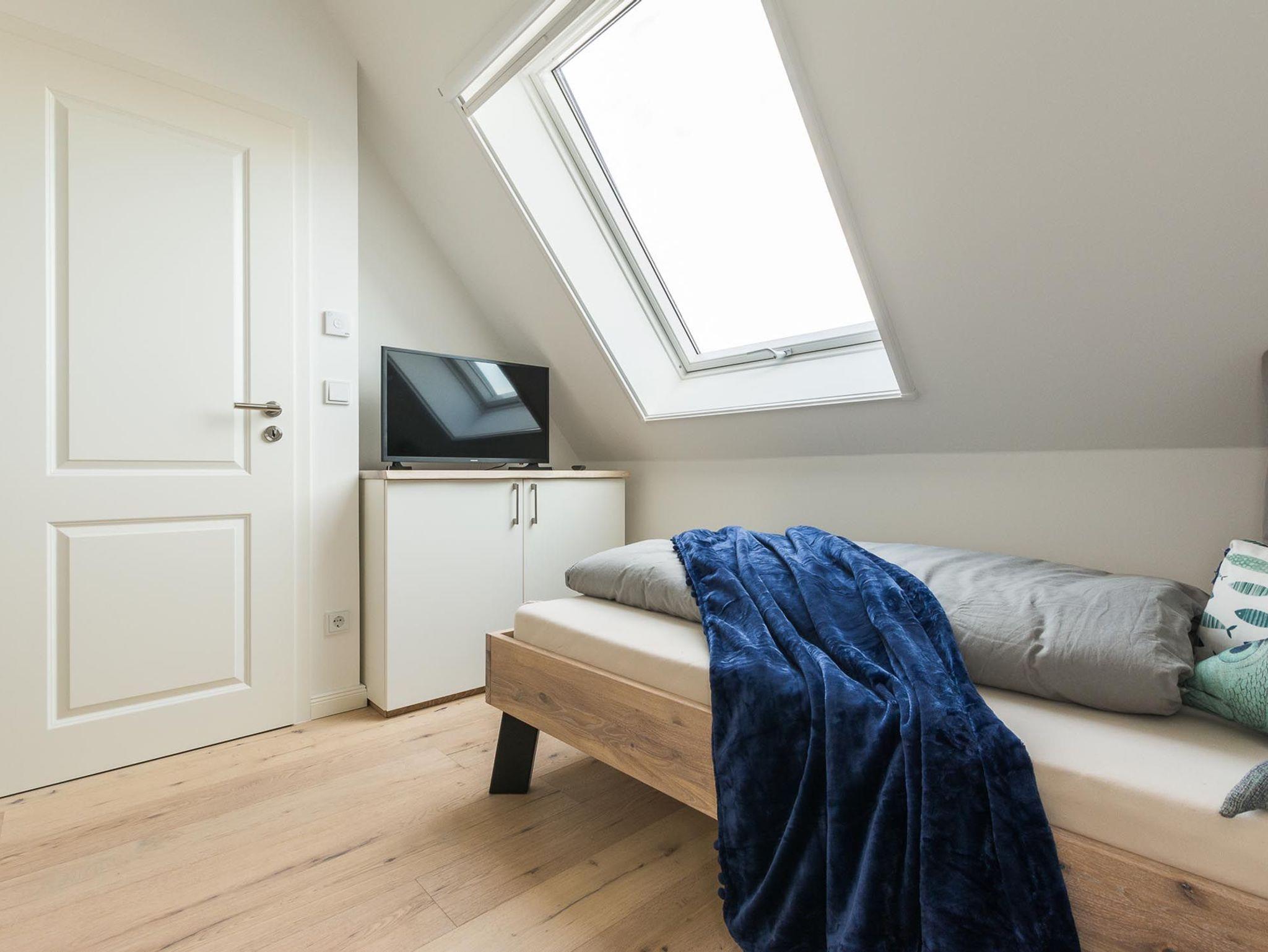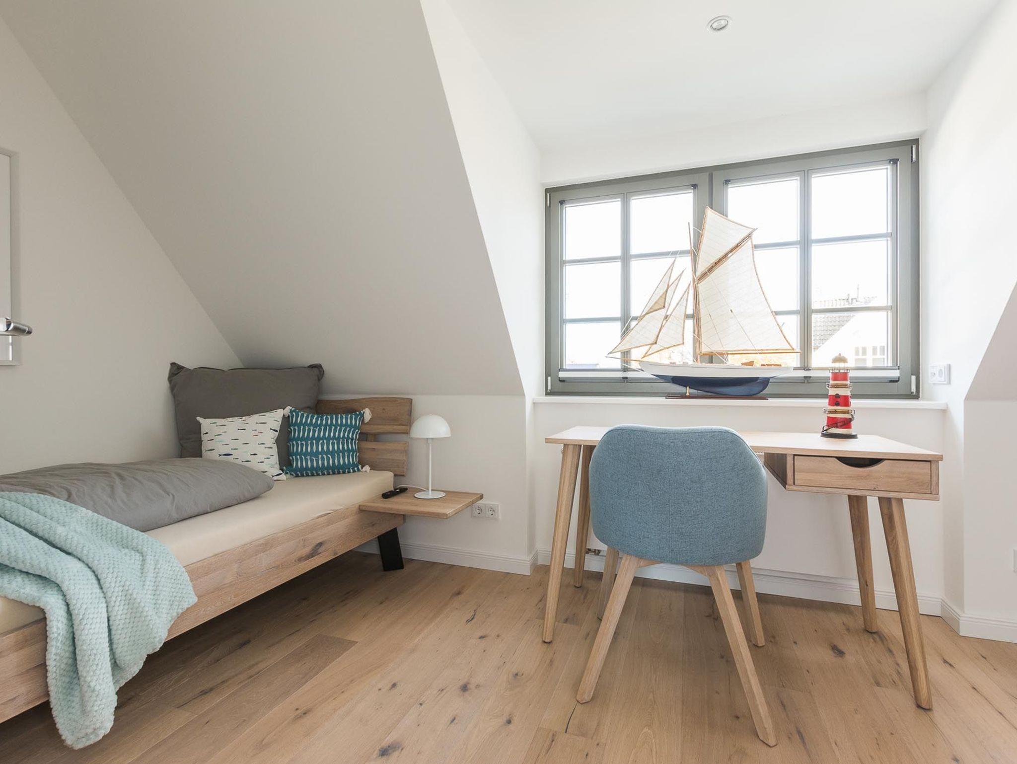 Unter dem Zingster Sternenhimmel befinden sich im Dachgeschoss zwei weitere gemütliche Einzelbetten.