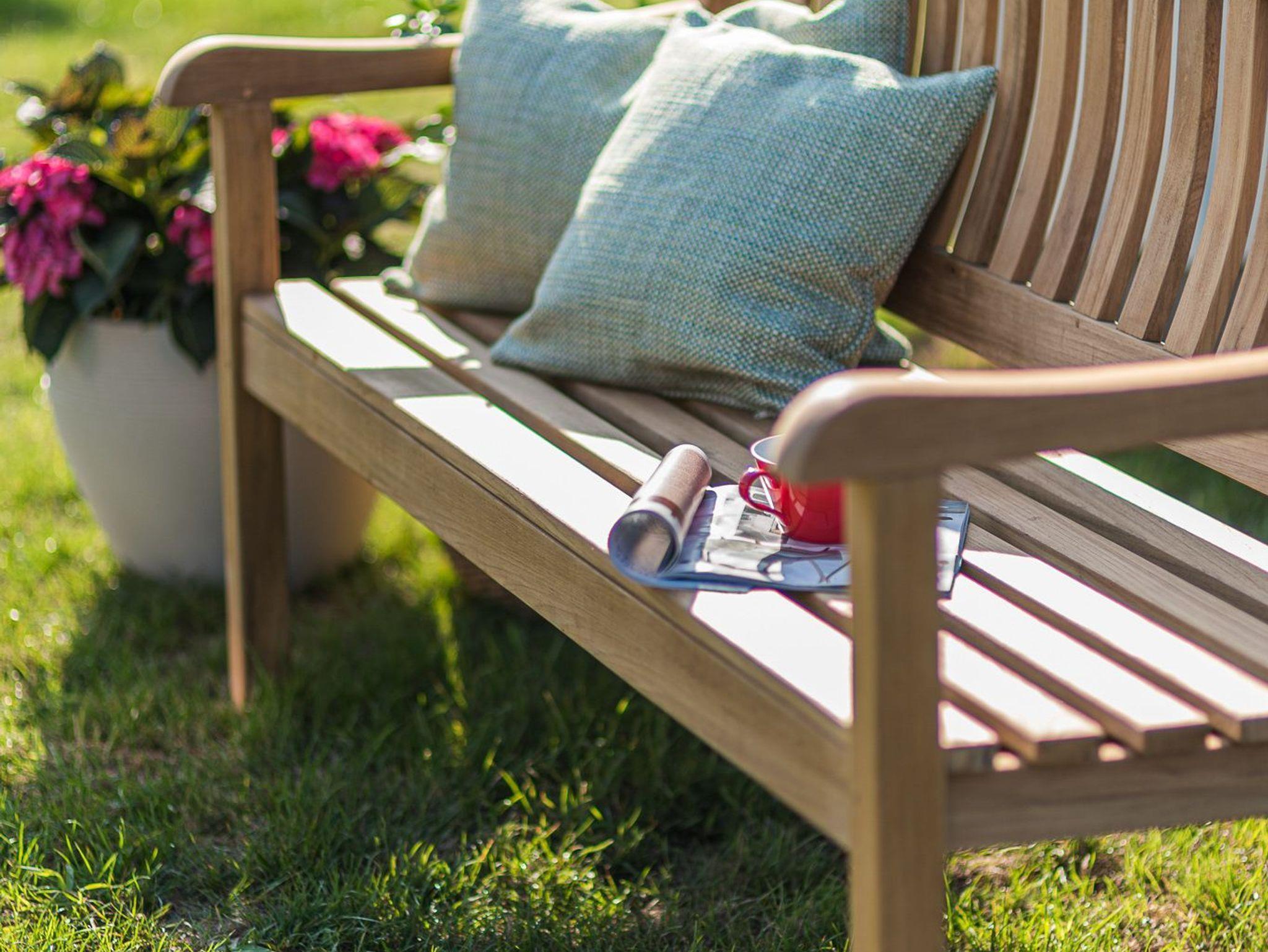 • Sonnige Terrasse mit hochwertigen Gartenmöbeln und Grill