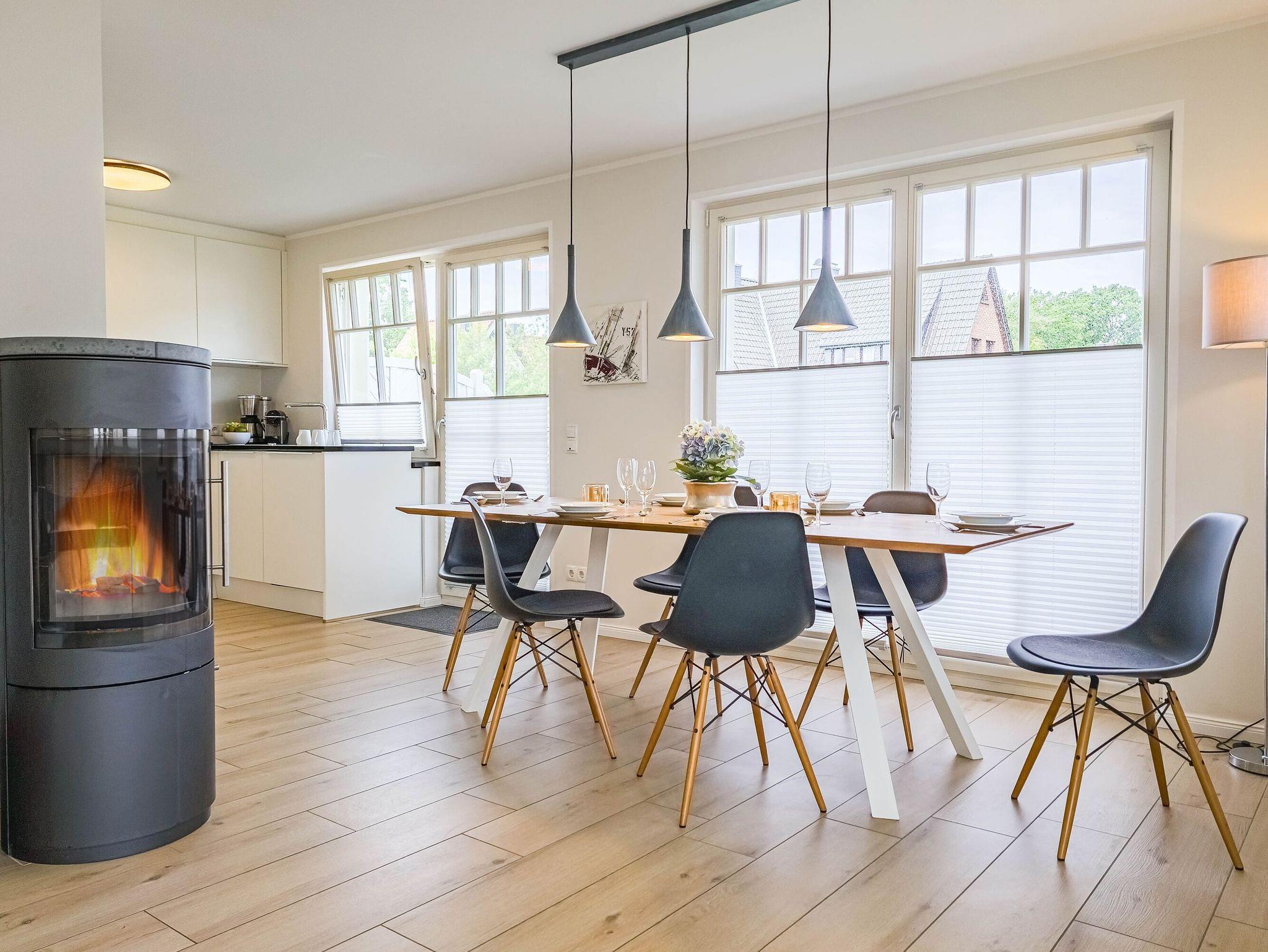Das Ferienhaus Kranschehus empfängt Sie mit einer warmen und einladenden Atmosphäre. Der großzügige Wohnbereich mit Kaminofen ist das Herz des Hauses und lädt zu entspannten Abenden ein ? sei es bei einem guten Buch oder einem gemeinsamen Spieleabend. Die moderne Küche ist vollständig ausgestattet, sodass Sie mühelos köstliche Mahlzeiten für Ihre Liebsten zubereiten können.