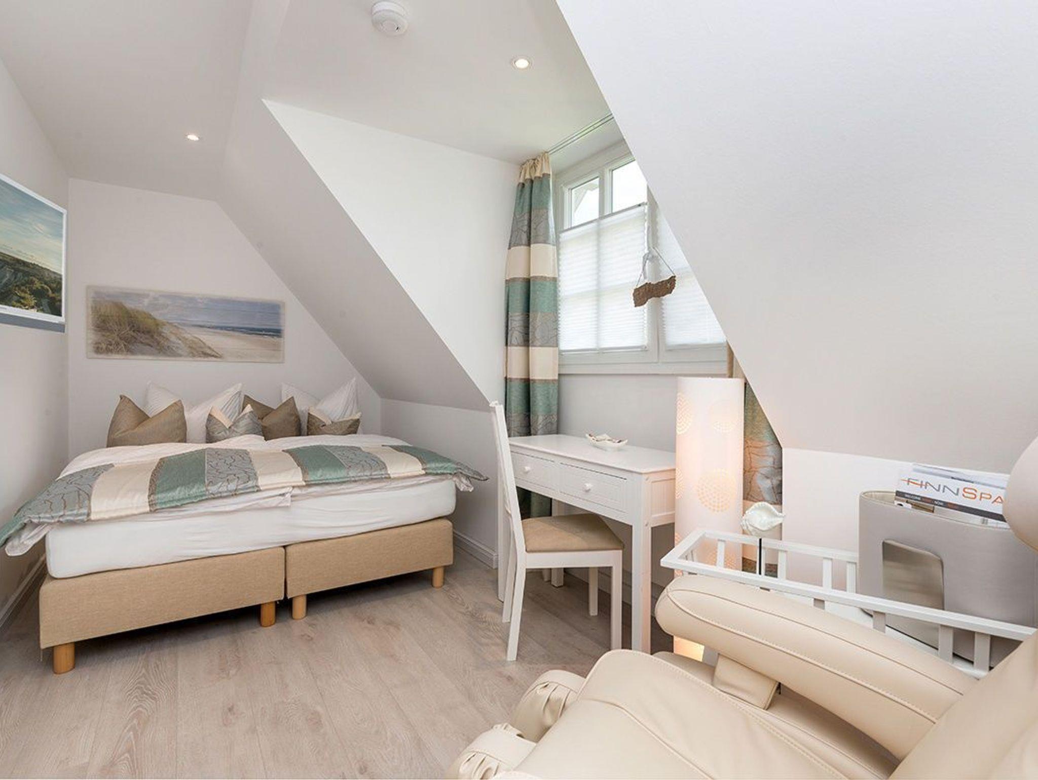 • Schlafzimmer: Drei behagliche Schlafzimmer mit hochwertigen Boxspringbetten (2 Doppelzimmer, 1 Zweibettzimmer)