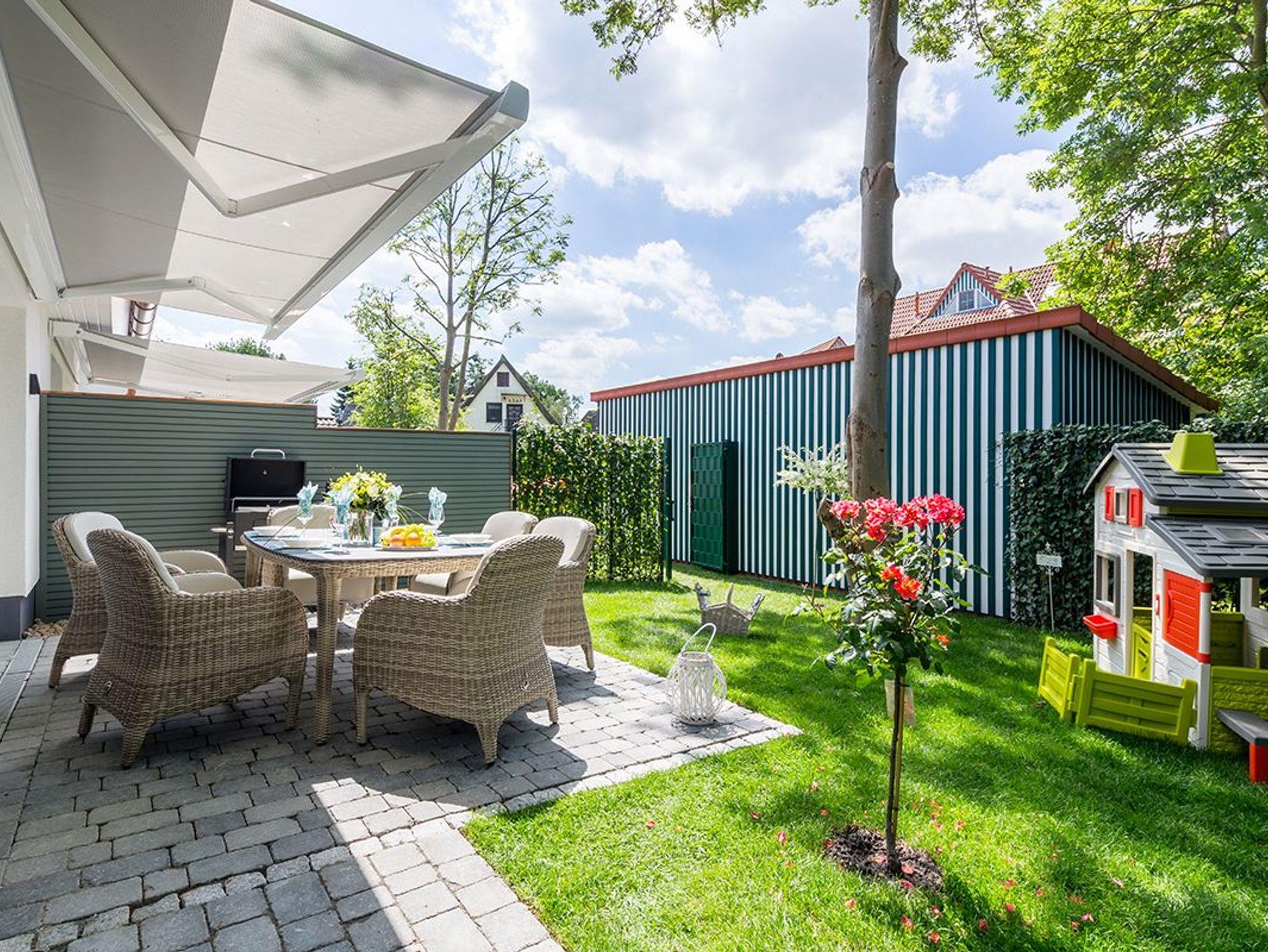 Der eingezäunte Garten ist ein kleines Paradies für Familien. Die jüngsten Gäste dürfen sich auf ein Smoby-Kinderspielhaus und eine Spielküche freuen. Selbstverständlich stellen wir Ihnen Kinderbett und Hochstuhl kostenlos zur Verfügung. Während die Kleinen spielen, können die Großen auf der Terrasse entspannen und den Tag in aller Ruhe ausklingen lassen.