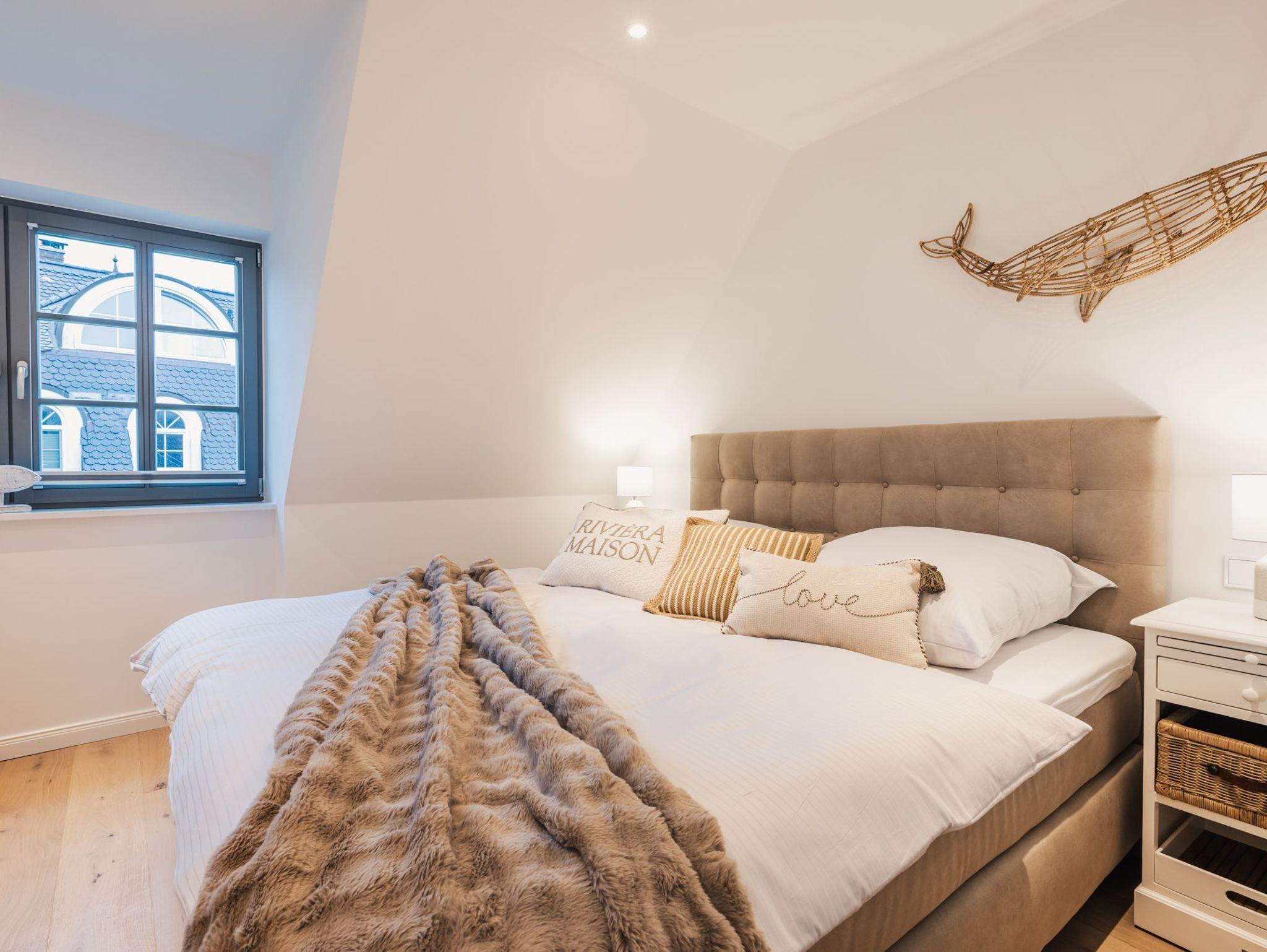Die drei Schlafzimmer sind mit zwei bequemen Boxspringbetten und zwei Einzelbetten ausgestattet. Verdunkelnde Plissees sorgen für erholsame Nächte, und alle Schlafzimmer bieten ausreichend Stauraum für Ihr Gepäck.