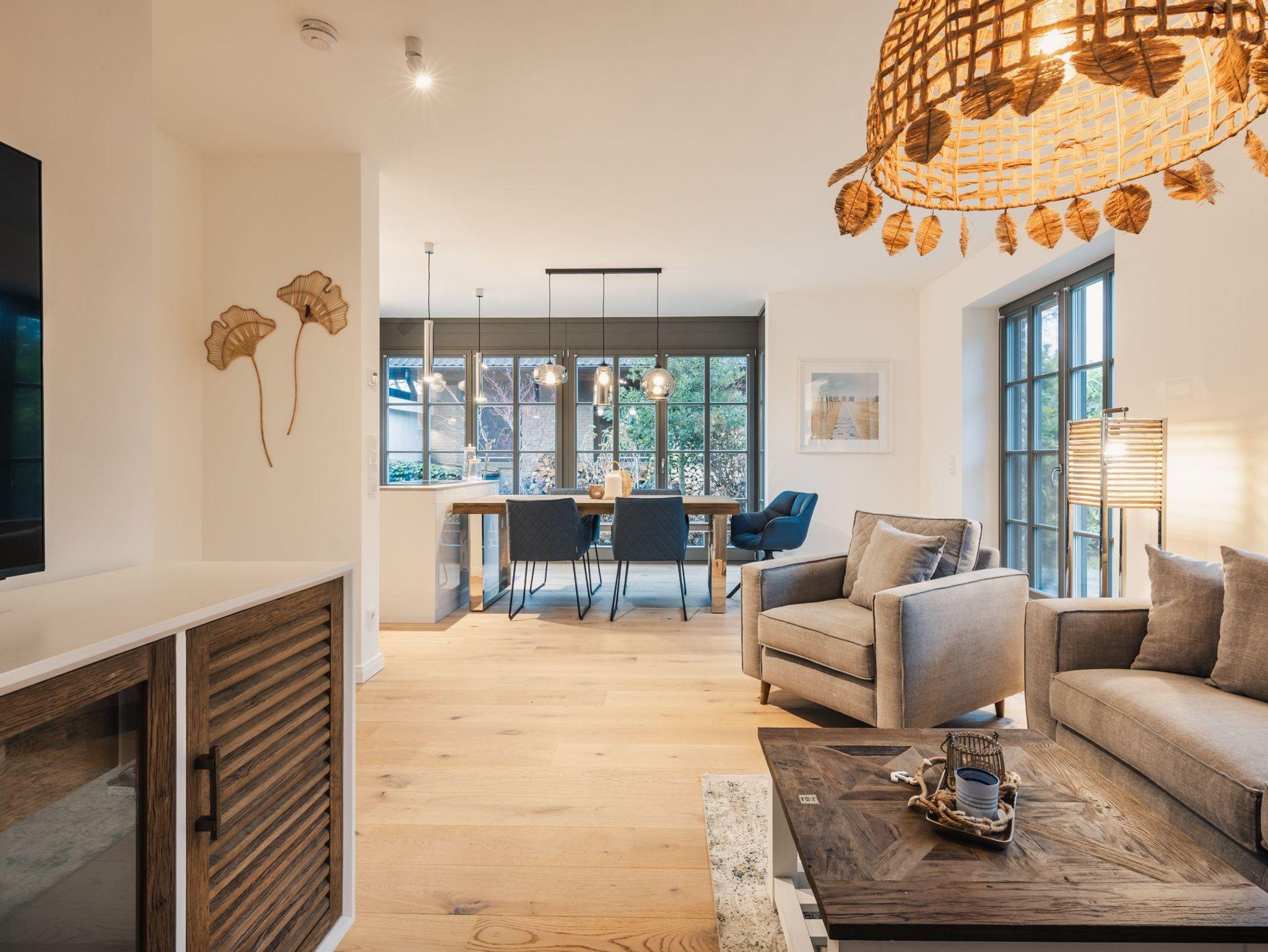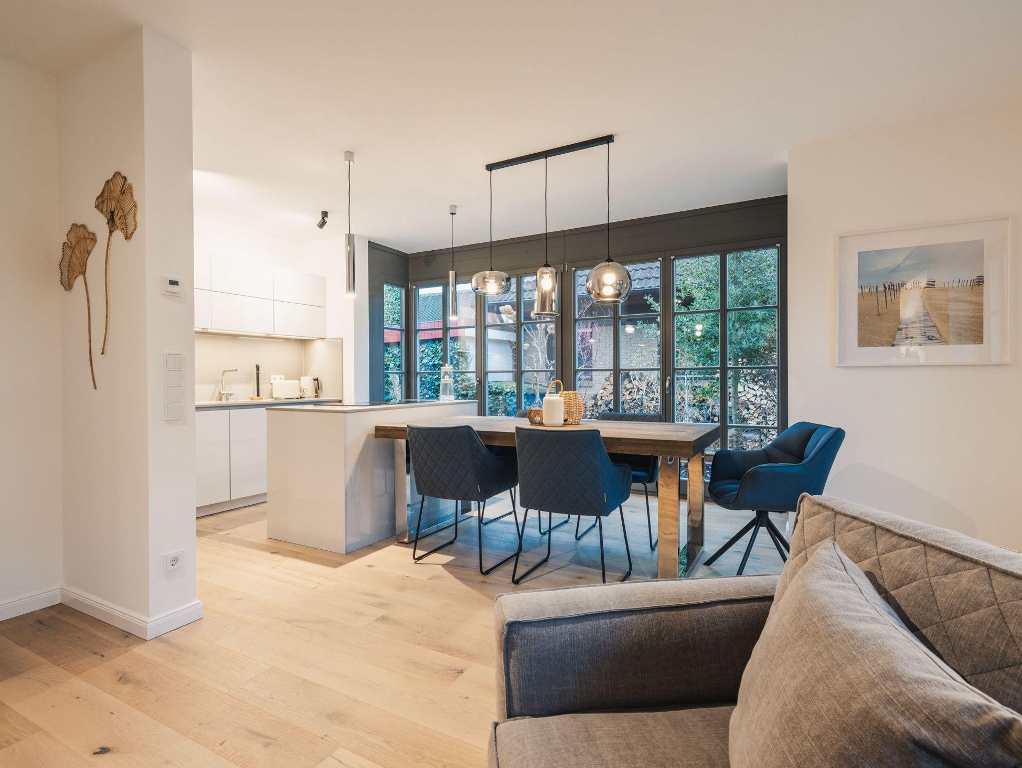 Das Ferienhaus ist gemütlich und komfortabel eingerichtet, um Ihren Aufenthalt so angenehm wie möglich zu gestalten. Der offene Wohnbereich verfügt über eine einladende Sofalandschaft, einen Esstisch und große Fenster, die viel Tageslicht hereinlassen. Die Küche ist mit einer Kochinsel versehen[nbsp] sowie mit modernen Markengeräten wie einem Geschirrspüler, Backofen und einer Kaffee Kapselmaschine.