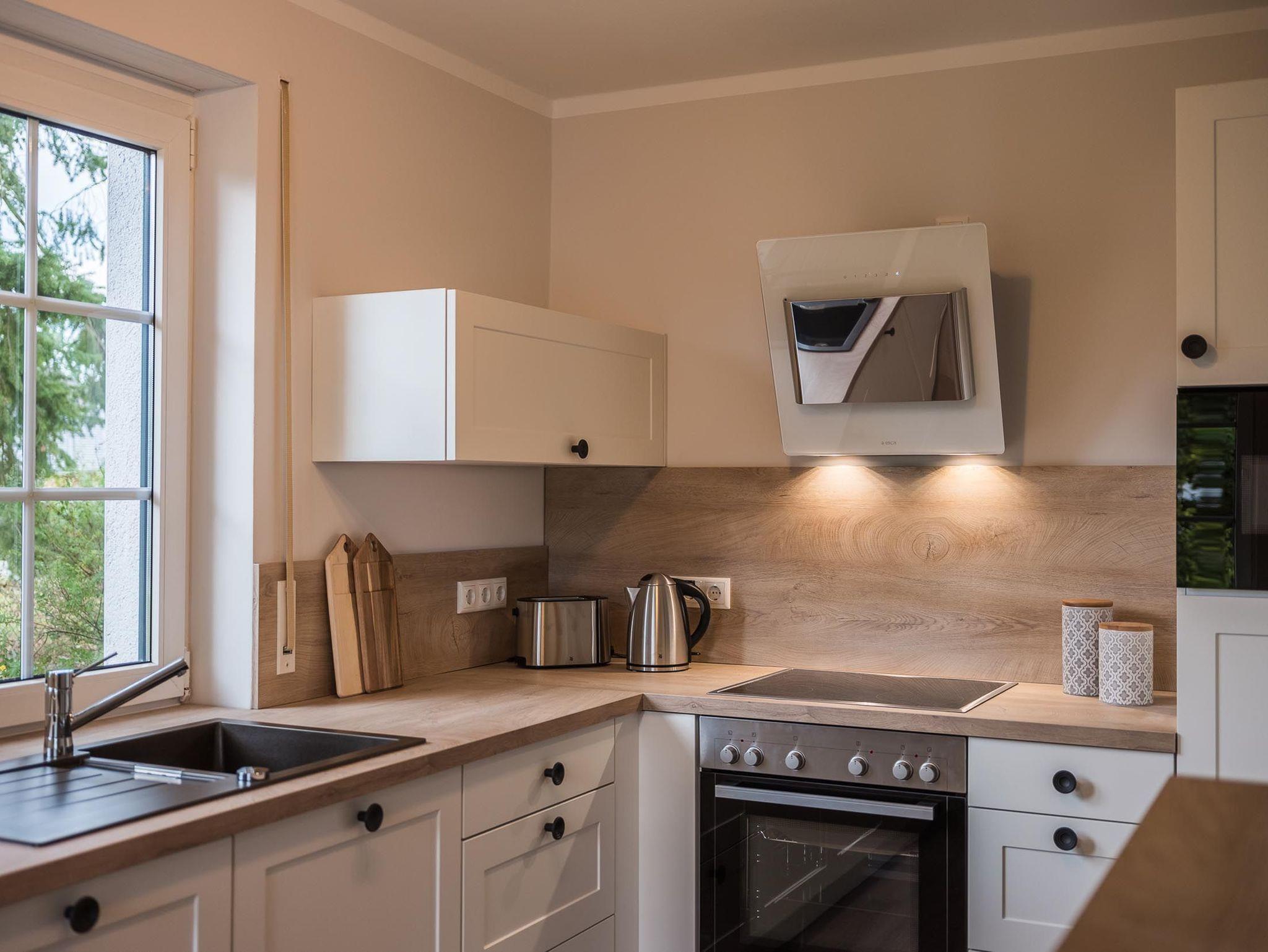 Der lichtdurchflutete Wohnbereich dieses Appartments im Erdgeschoss, umfasst eine urgemütliche Couch mit zwei Sesseln zum Relaxen für gemeinsame gemütliche Abendstunden und einen separaten großen Essbereich. Die angrenzende Küche ist voll ausgestattet und hat einen niedlichen Stehtisch für die erste Konversation am Morgen.