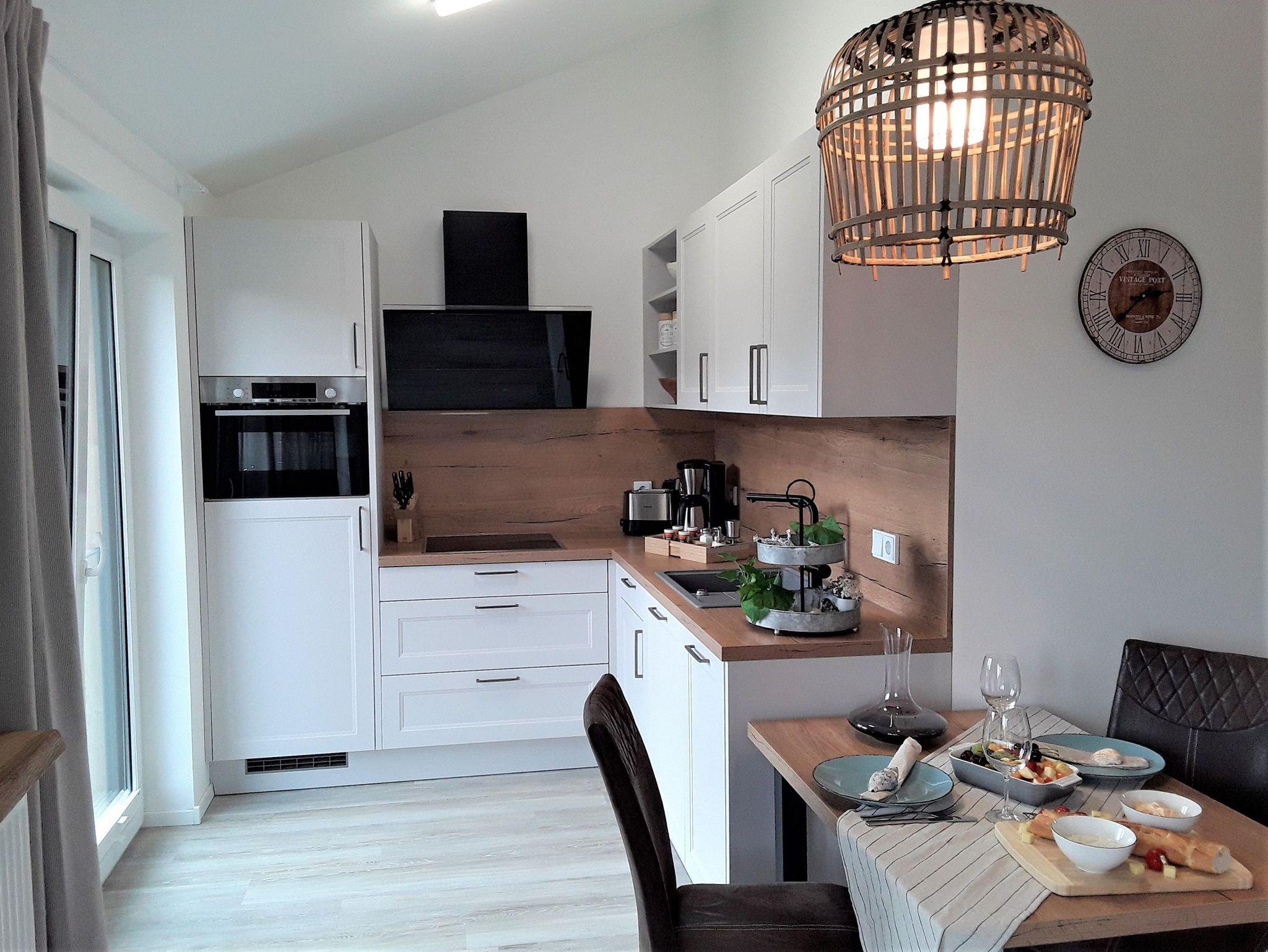 Die moderne und hochwertig ausgestattete Wohnung wurde im Juni 2022 fertig gestellt und befindet sich in einer ruhigen Sackgasse direkt am Waldrand. Ihre Raumhöhe bis in die Dachschräge und ihr offener Wohnbereich mit bodentiefen Fenstern verleihen dieser Wohnung ein besonderes Wohlfühlambiente. Es erwartet Sie eine vollständig ausgestattete Küche mit einem großzügigen Essbereich.