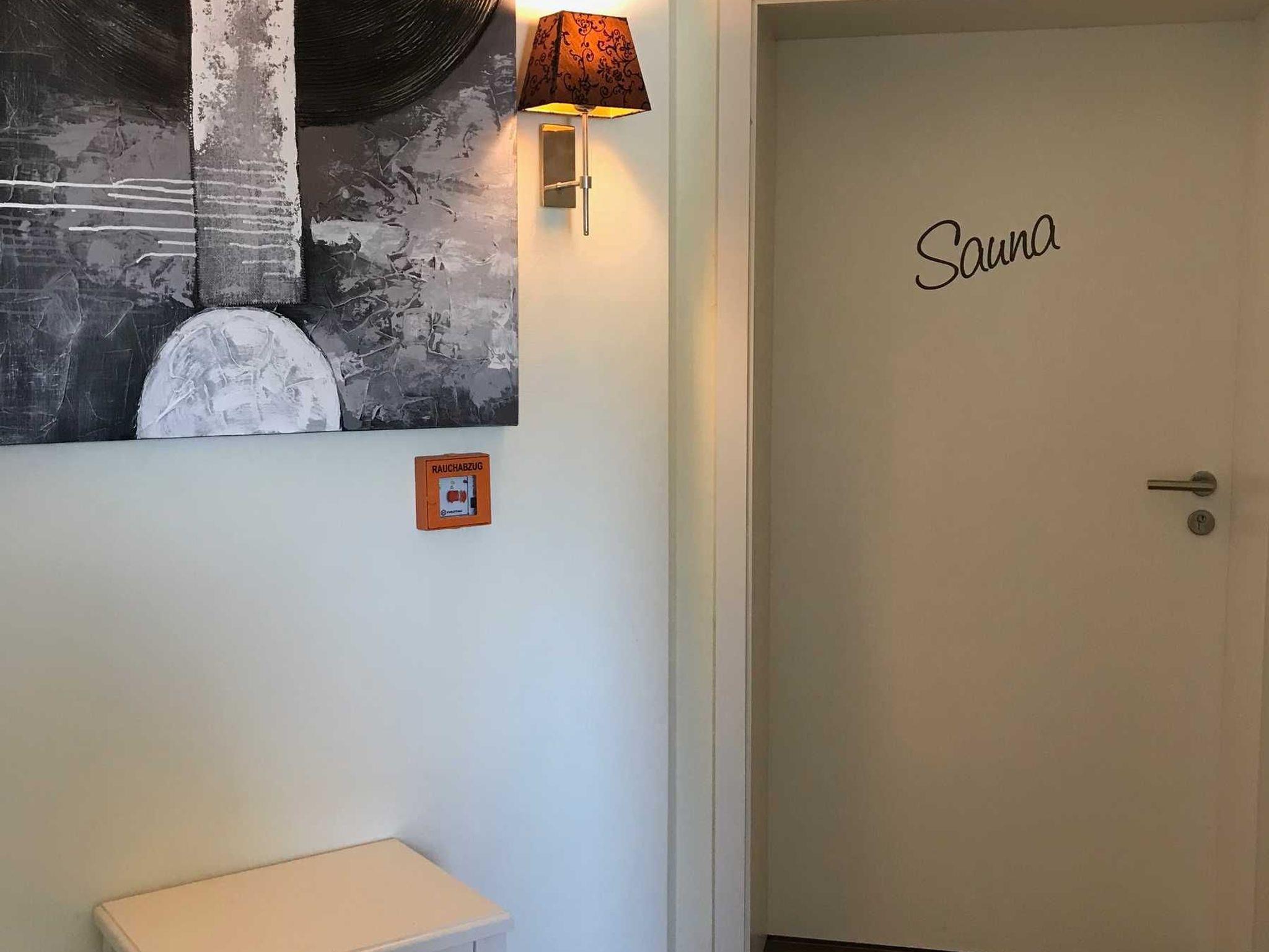 Die Ferienwohnung befindet sich im 2. OG des Hauses. Die Sauna befindet sich auf der selben Etage.