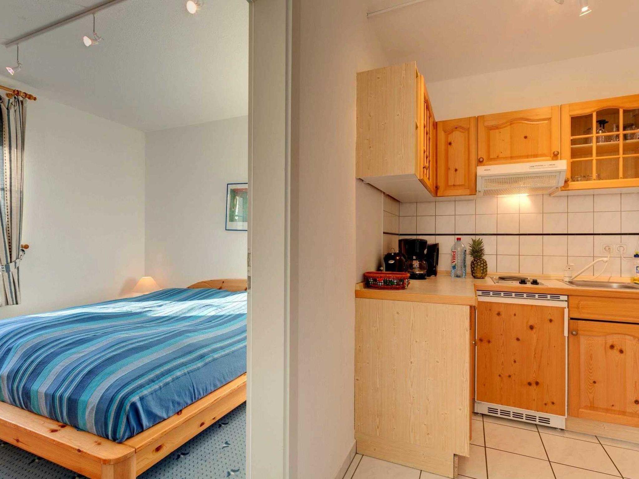 Die Zweiraumwohnung besteht aus Wohnraum mit integrierter Küche und Essecke, einem Schlafzimmer mit Doppelbett und einem Badezimmer mit Dusche und Toilette.