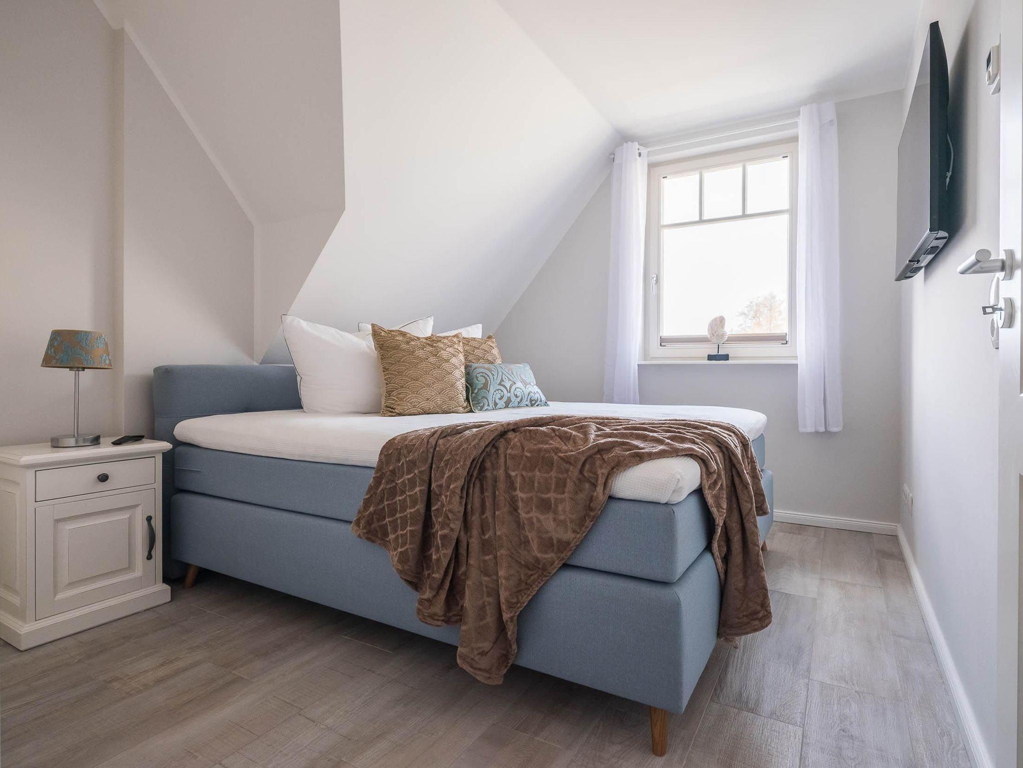 Am Ende von ereignisreichen, sportlichen oder auch entspannten Tagen in Zingst und Umgebung ruhen Sie sich am besten auf dem Marken-Boxspringbett im größeren oder auf Marken-Schlafmatratzen im kleineren Schlafzimmer aus. Für die ganz Kleinen gibt es ein aufklappbares Kinderreisebett inkl. Matratze. Zur Ferienwohnung gehört 1 Pkw-Stellplatz und ein großer Schuppen, in dem Fahrräder, Bollerwagen oder auch Kinderwagen untergestellt werden können.