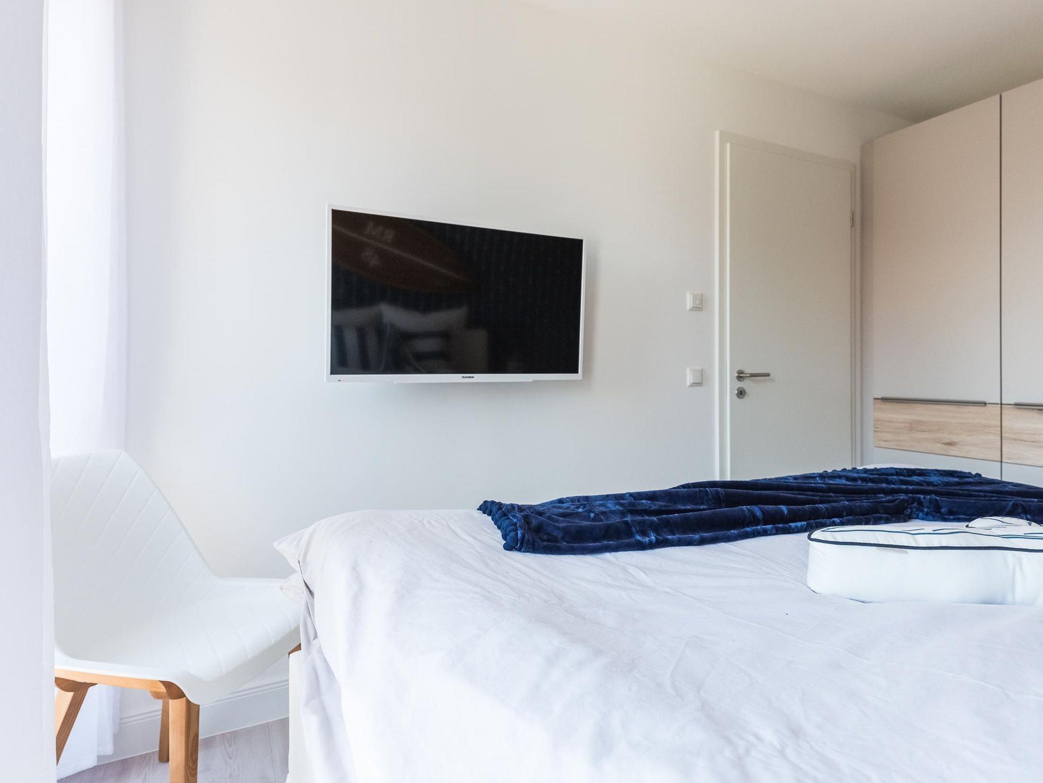 Beide Schlafzimmer wurden jeweils mit einem großen bequemen Boxspringbett ausgestattet. Perfekt für einen traumhaft erholsamen Schlaf.