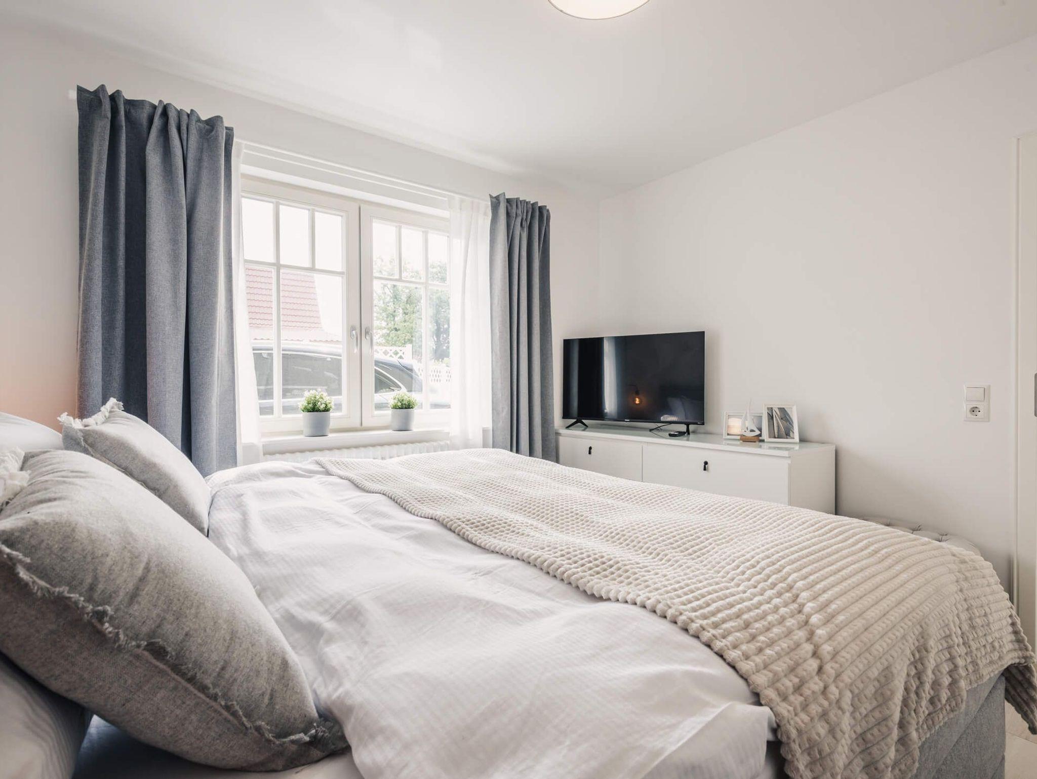 Das Haus ist 2023 fertiggestellt, modern, liebevoll und hochwertig eingerichtet. Es verfügt über drei Schlafzimmer (eins mit einem Doppelbett und zwei mit Boxspringbetten), zwei modernen Bädern mit jeweils einer bodengleichen Dusche (eines ist zusätzlich mit einer großen Badewanne ausgestattet). Im geräumig offenen Wohn- und Essbereich (Wohnküche) können sie gemütliche Abende mit der Familie verbringen und von dort aus gelangen sie auf die große Terrasse mit Pavillon und Süd-Westausrichtung. Eines der großen Schlafzimmer im Obergeschoss verfügt über einen Balkon mit Südausrichtung und bietet eine tolle und atemberaubende Aussicht. Jedes Zimmer hat ein Fenster mit Insektenschutzgitter. Es gibt insgesamt 3 Flatscreen TV und kostenloses WLAN. Für die Kleinsten sind ein Kinder-Reisebett, Kindergeschirr und ein Hochstuhl vorhanden. Ein Schlafzimmer kann man auch komplett abdunkeln.