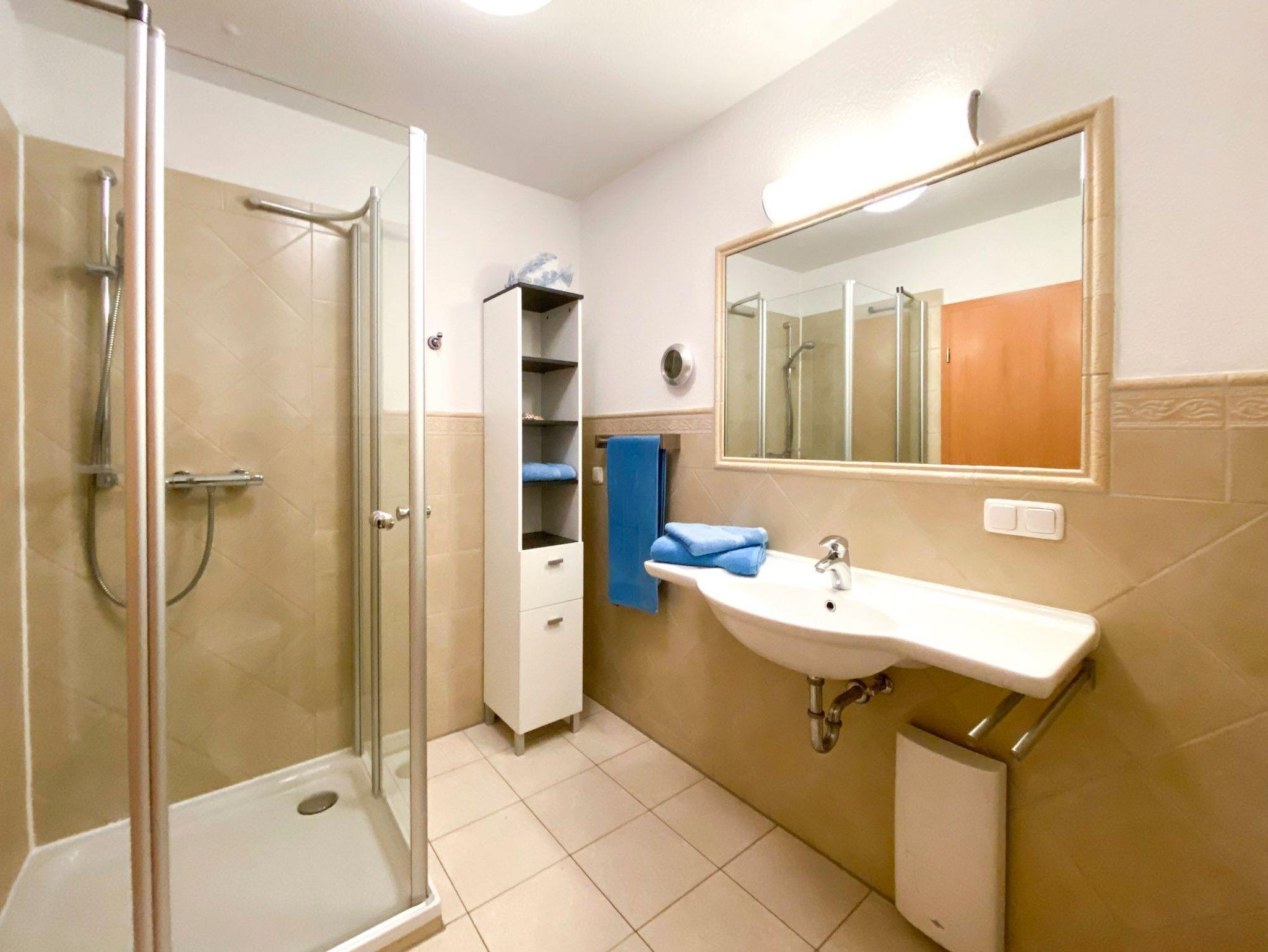 • Modernes Badezimmer mit Dusche und Haartrockner