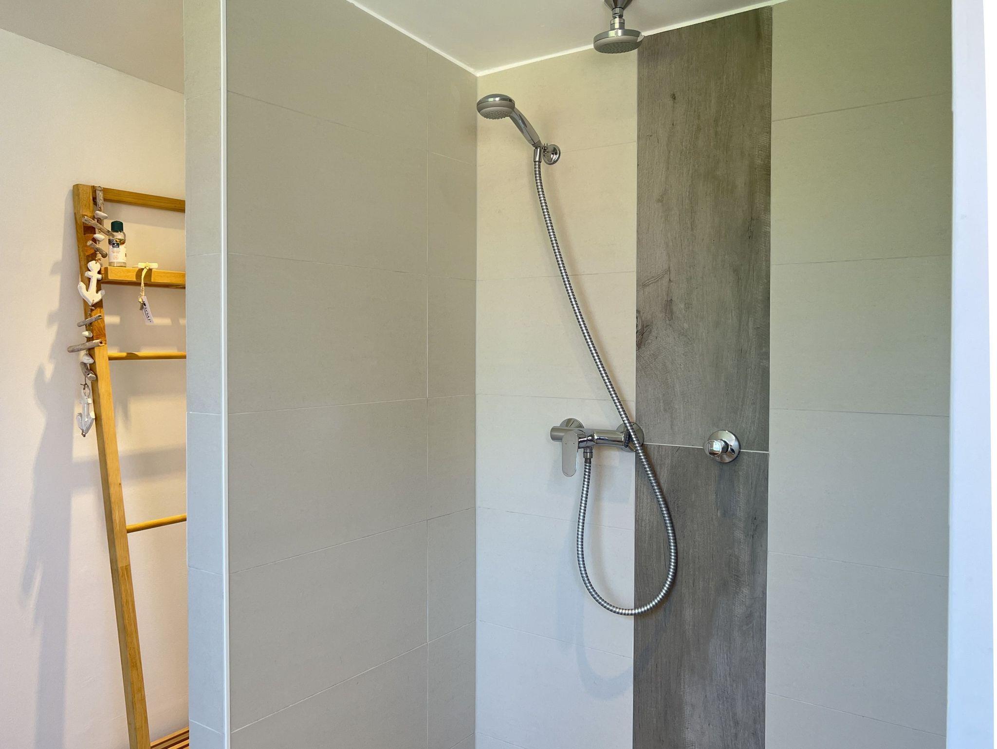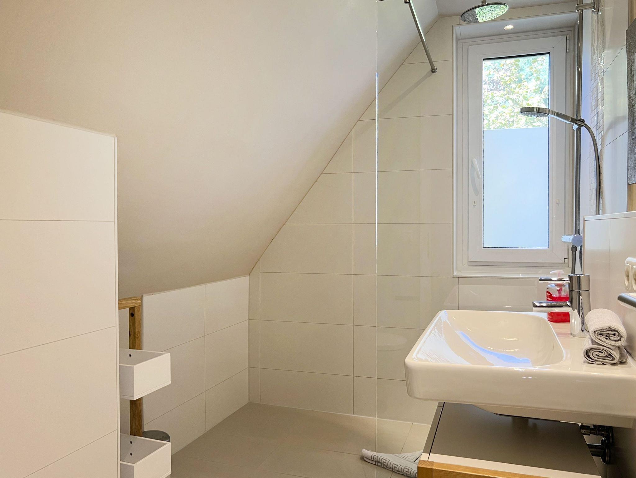 • Badezimmer 1: Ebenerdige Dusche/WC mit Fußbodenheizung und Haartrockner