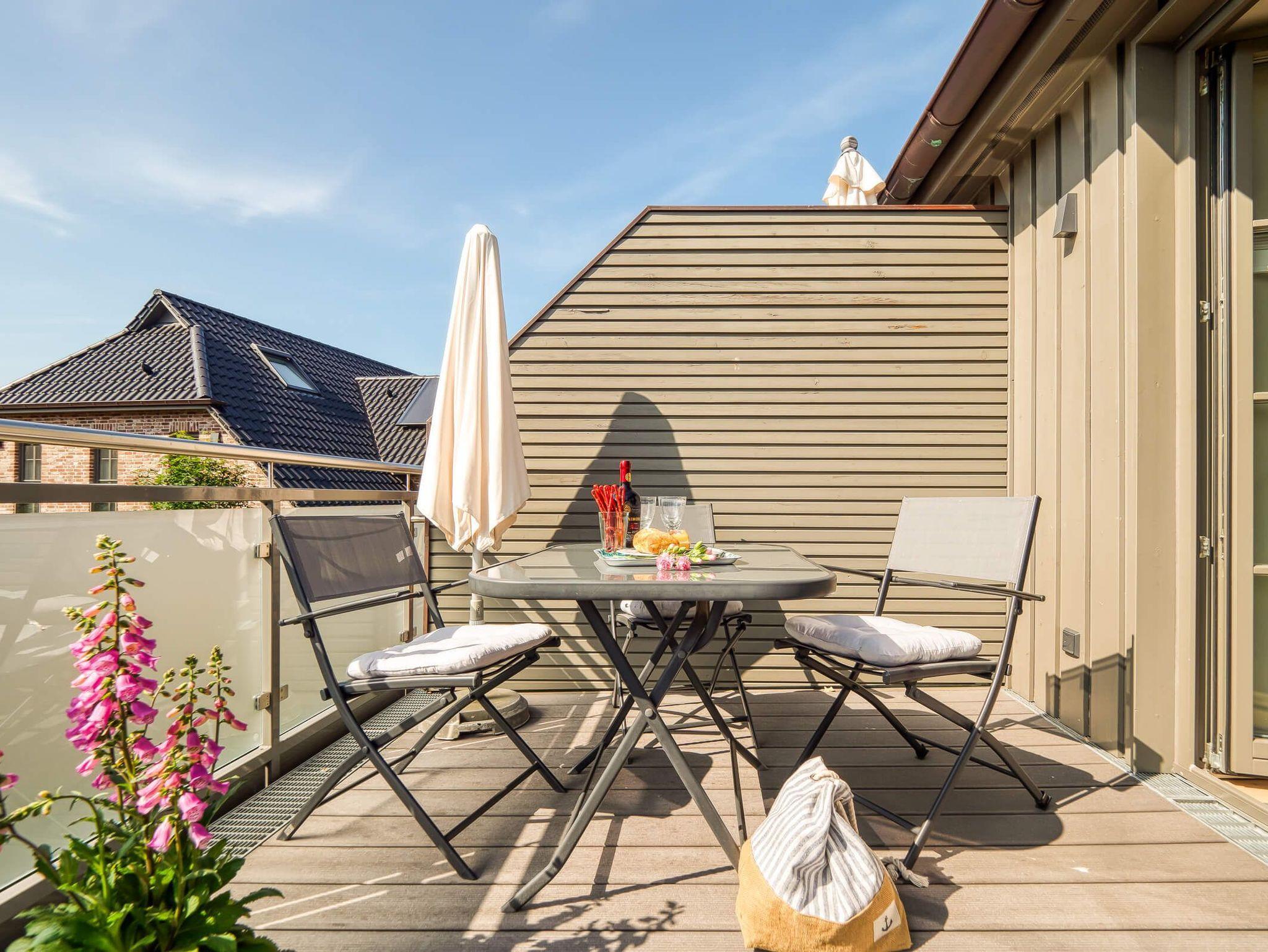 Nach einem langen Tag an der frischen Ostseeluft bietet die bodentiefe Raindance-Dusche eine erfrischende Möglichkeit, zu entspannen. Der windgeschützte Balkon ist der perfekte Ort, um den Tag mit einem Frühstück zu beginnen oder abends die letzten Sonnenstrahlen zu genießen. Für Radfahrer steht ein abschließbares Fahrraddepot mit E-Bike-Lademöglichkeit zur Verfügung.