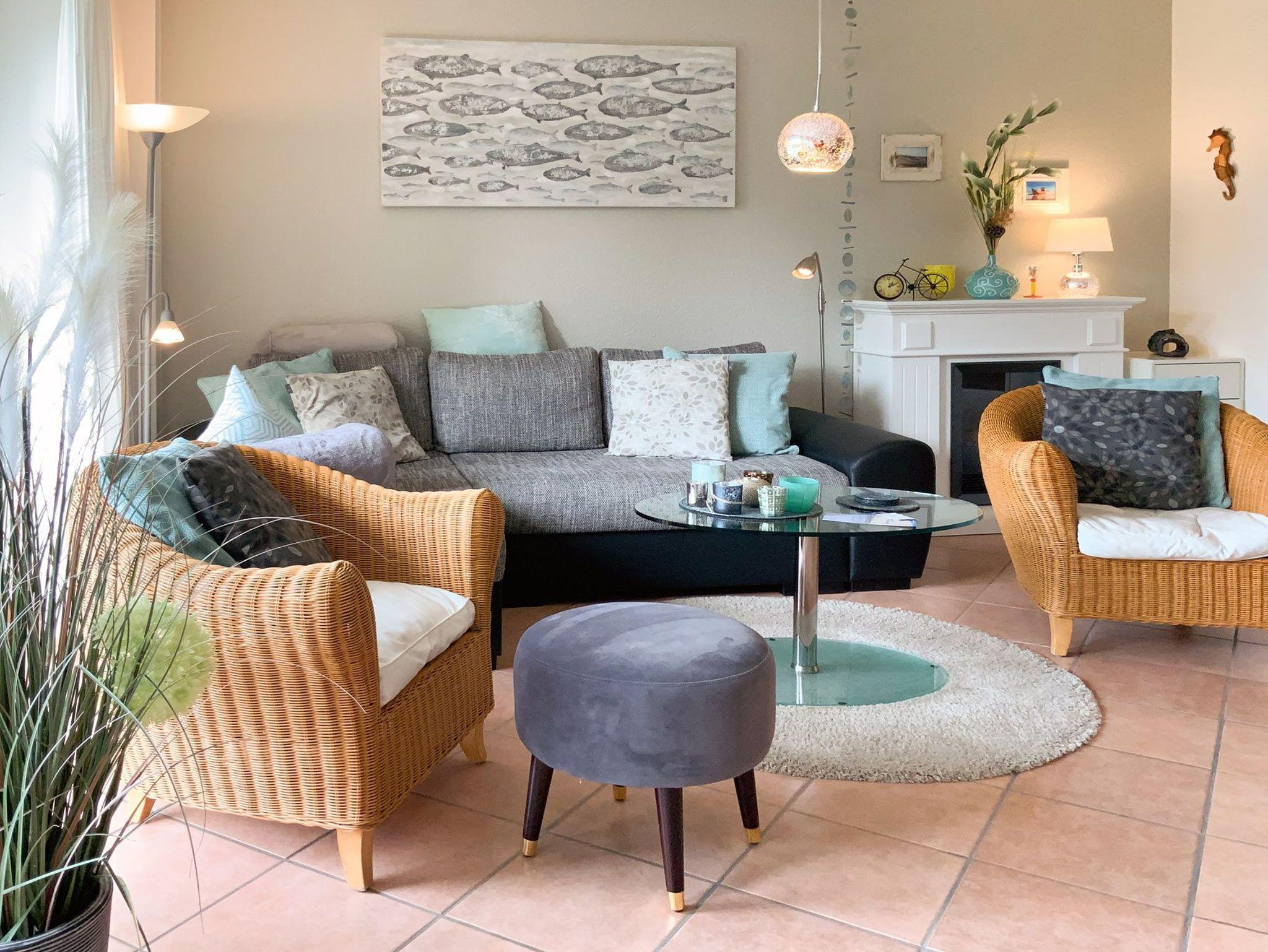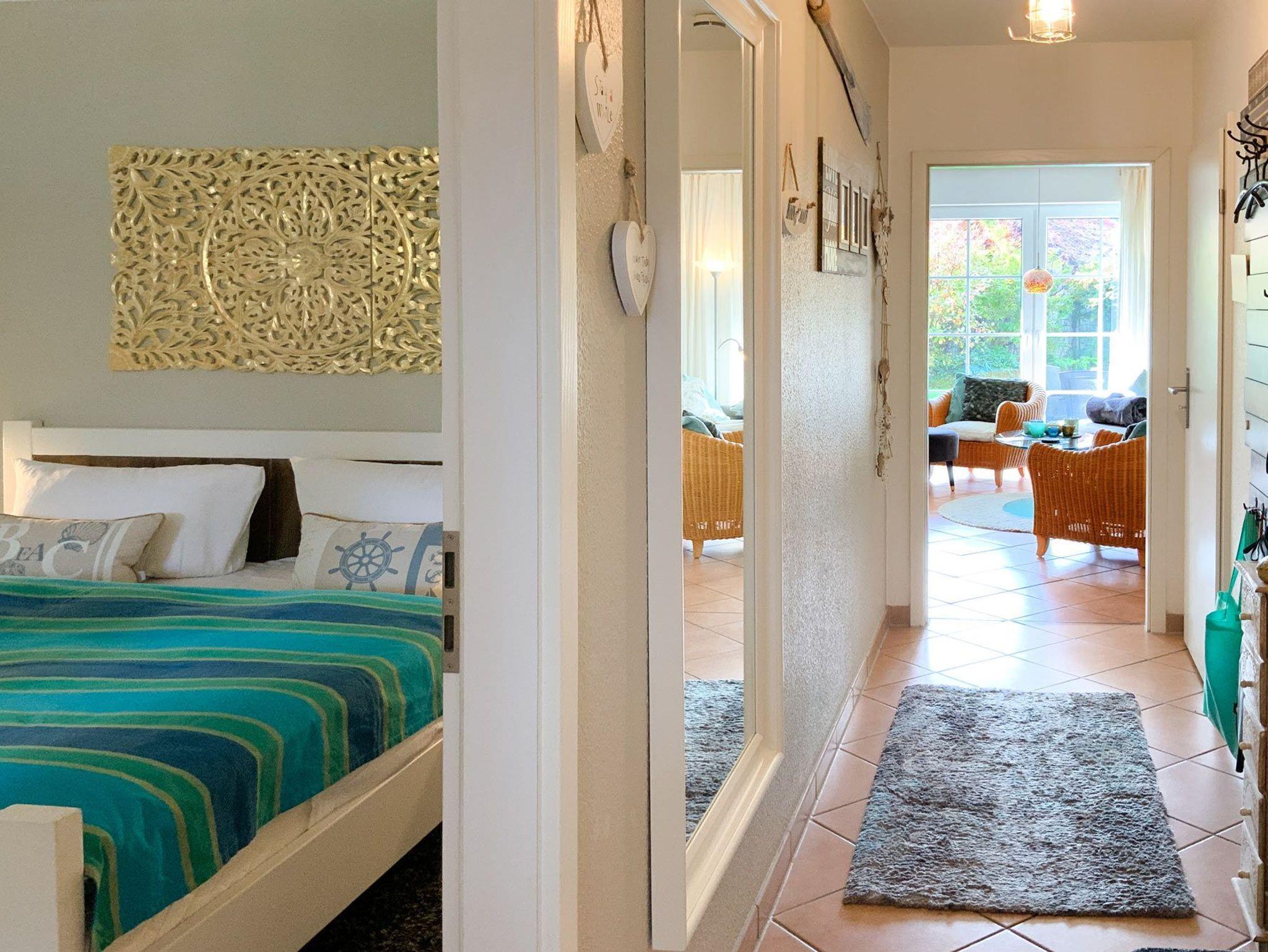 Die Ferienwohnung Traummomente empfängt Sie mit einer modernen und maritimen Atmosphäre. Der großzügige Wohn- und Essbereich lädt zum Verweilen ein, während die voll ausgestattete Küche alle Annehmlichkeiten für kulinarische Erlebnisse bietet. Das separate Schlafzimmer sorgt für erholsamen Schlaf, und der Elektrokamin schafft bei Bedarf eine gemütliche Stimmung.