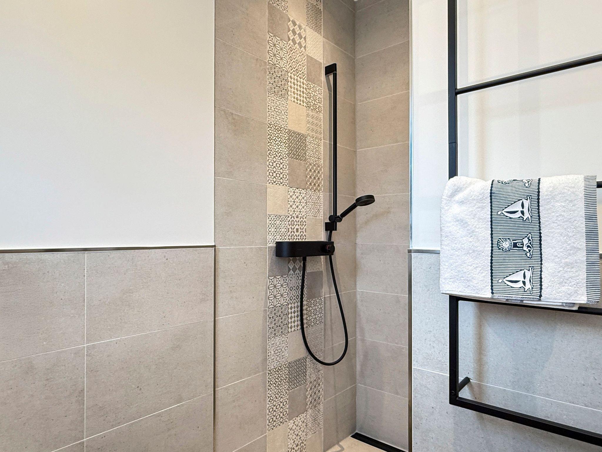 • Moderne Badezimmer mit ebenerdiger Regendusche