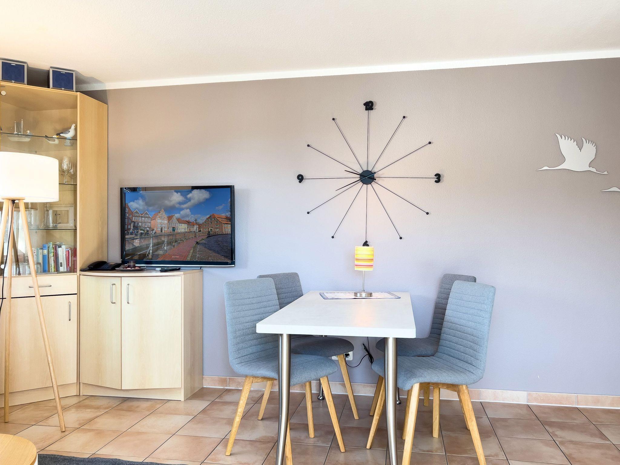 • Geräumiger Wohn- und Essbereich: Mit bequemer Sofaecke, Flachbild-TV und einladendem Essplatz.
