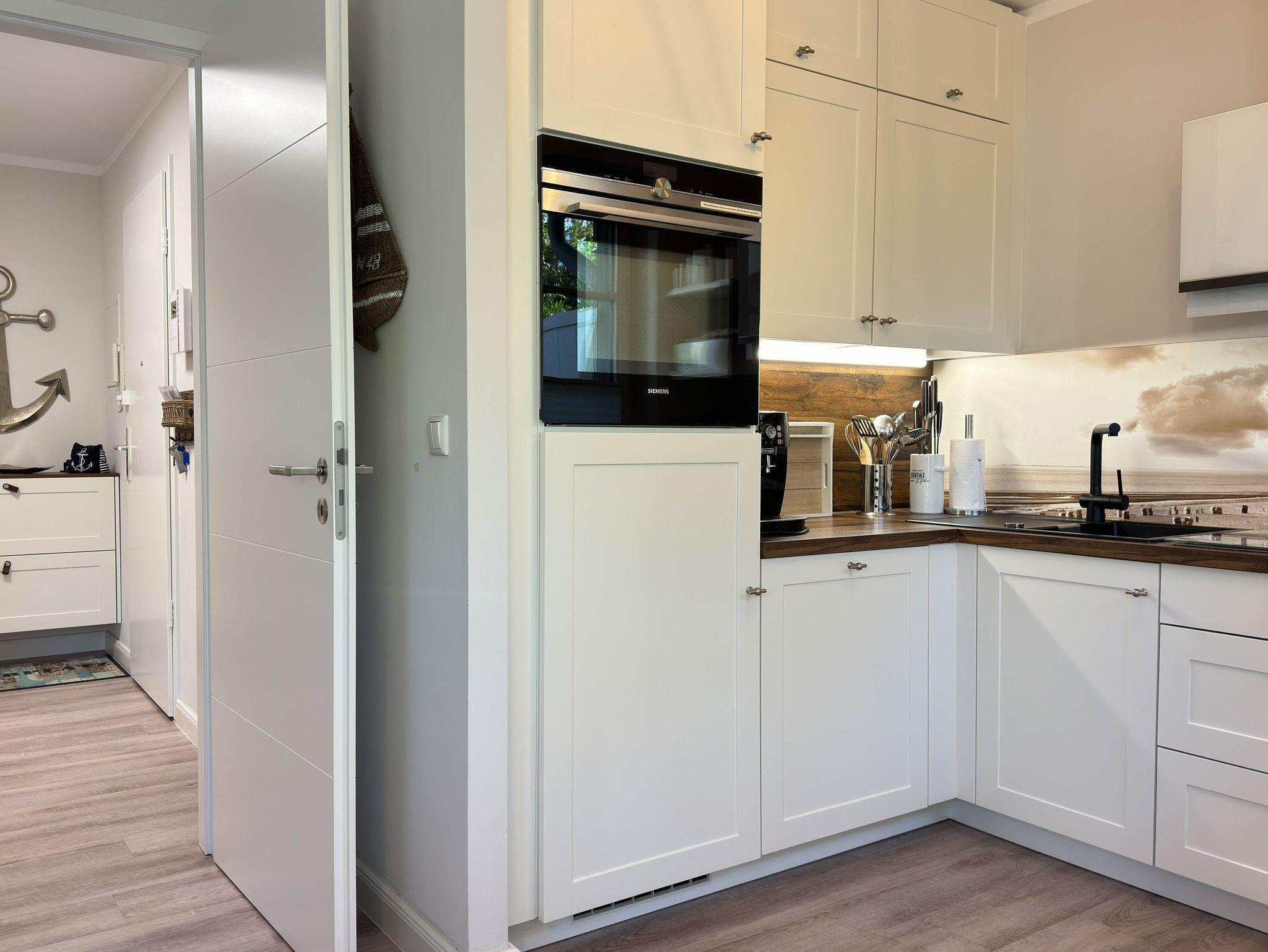 Die Ferienwohnung empfängt Sie mit einer harmonischen und einladenden Atmosphäre. Das Schlafzimmer mit luxuriösem Boxspringbett garantiert erholsamen Schlaf. Die voll ausgestattete Küche mit Weinkühlschrank und Kaffeevollautomat lässt keine Wünsche offen ? ideal für Weinliebhaber und Kaffeegenießer. Der offene Wohn- und Essbereich mit gemütlicher Couch, Smart-TV und Soundbar bietet den perfekten Rahmen für entspannte Abende.