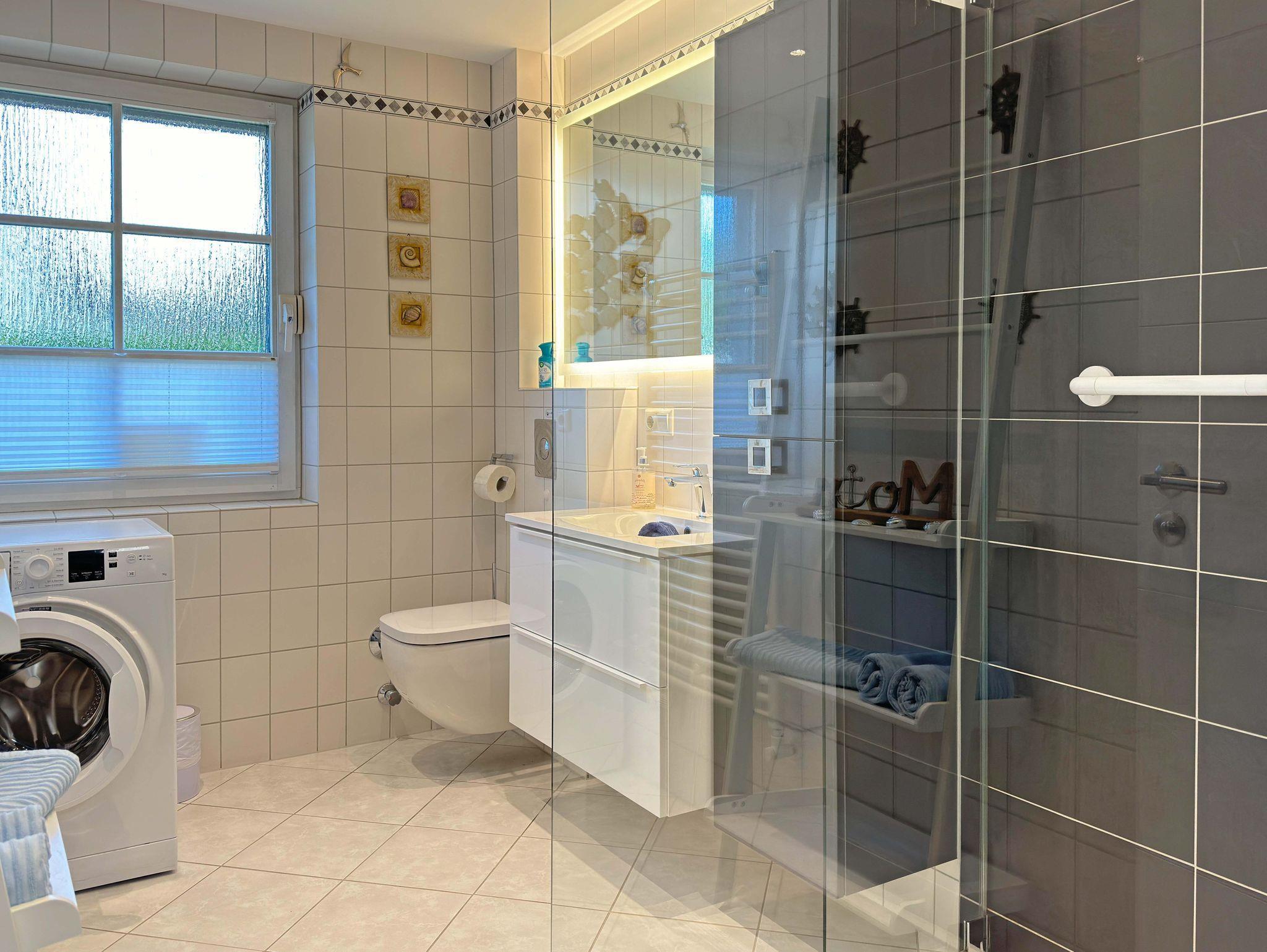 Die private Sauna in der Wohnung sorgt für pure Entspannung. Auf der Terrasse mit Strandkorb, Sonnenschirm und Elektrogrill können Sie die frische Ostseeluft genießen. Der umzäunte Garten bietet zusätzliche Privatsphäre und Ruhe. Die Wohnung ist ebenerdig und somit ideal für Gäste, die Komfort ohne Treppensteigen schätzen.