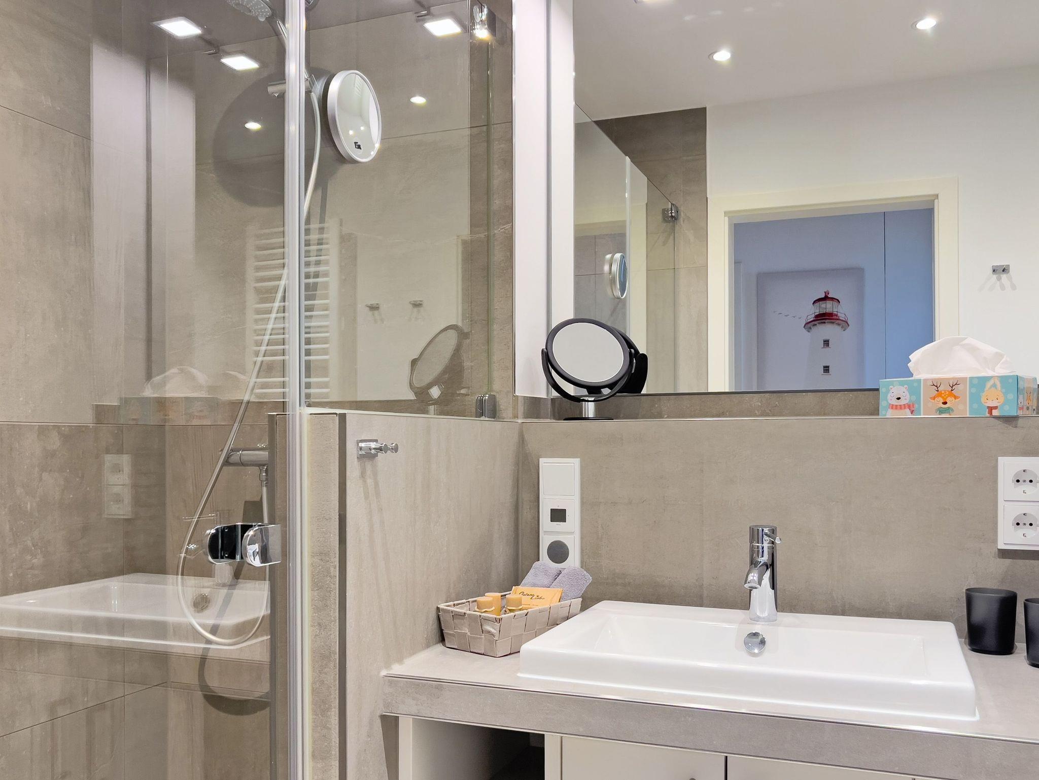 • Badezimmer: Elegantes Bad mit bodentiefer Dusche, Fußbodenheizung und hochwertigen Armaturen für zusätzlichen Komfort.