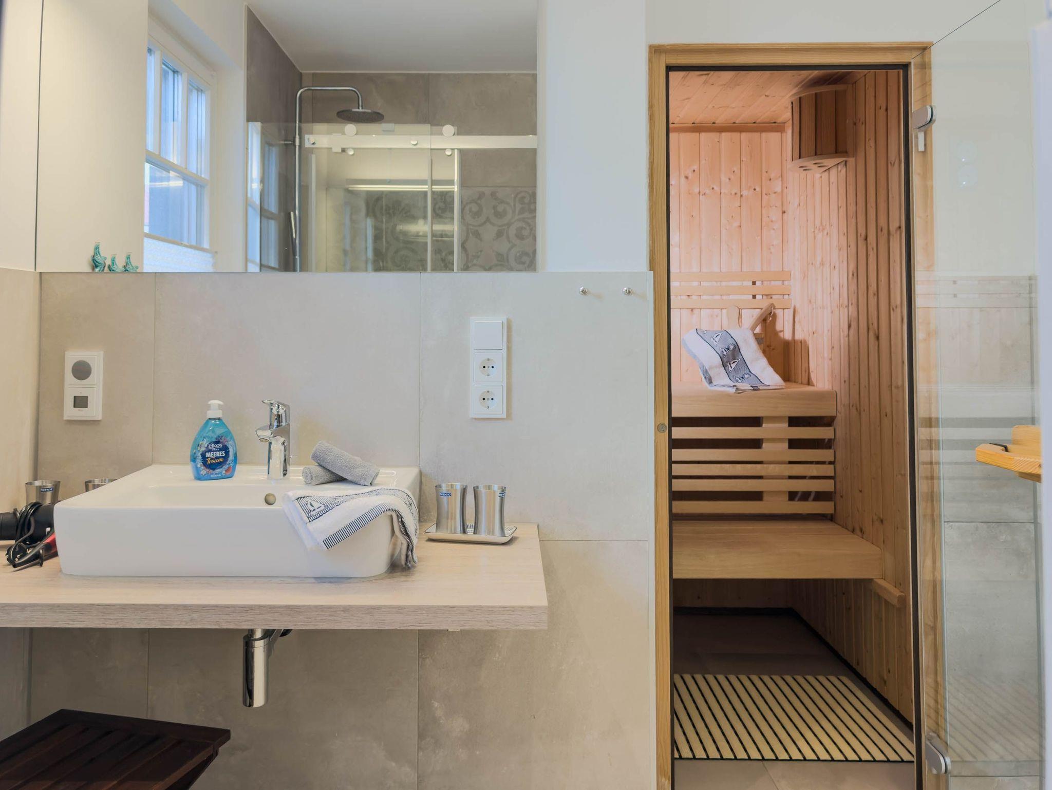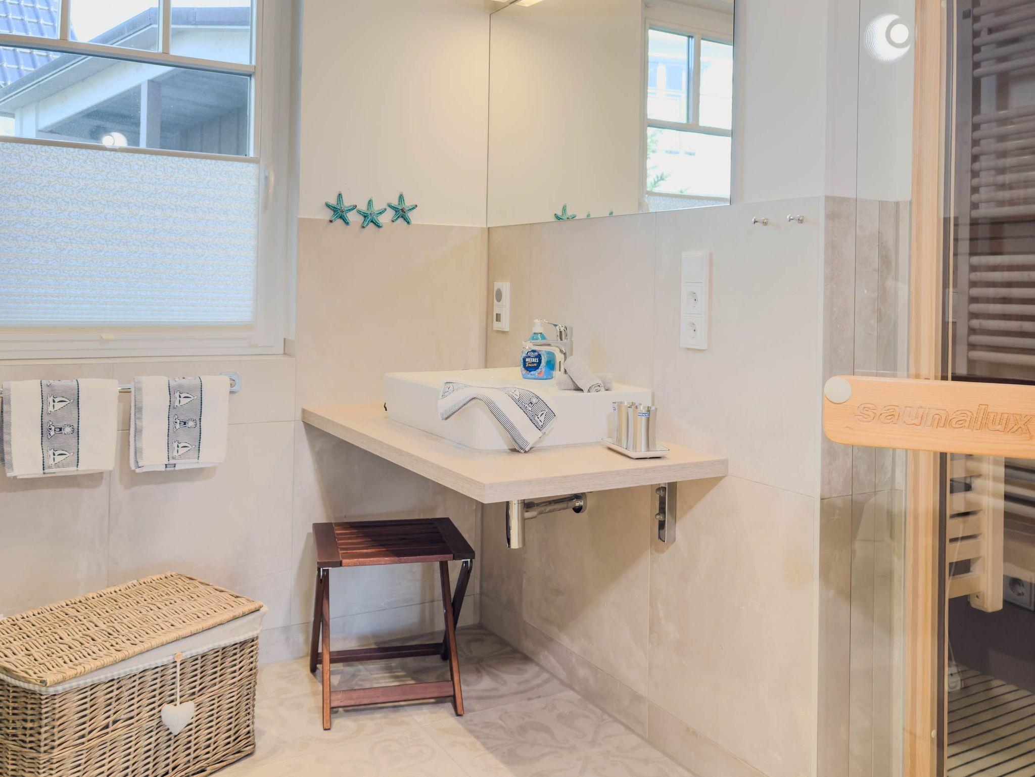 Nach einem Tag am Strand, einer Radtour oder einem Ausflug zum Bodden lädt die private Sauna dazu ein, die Seele baumeln zu lassen.
