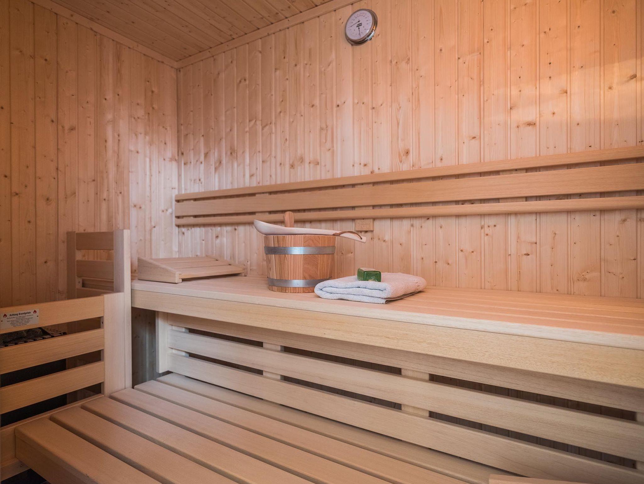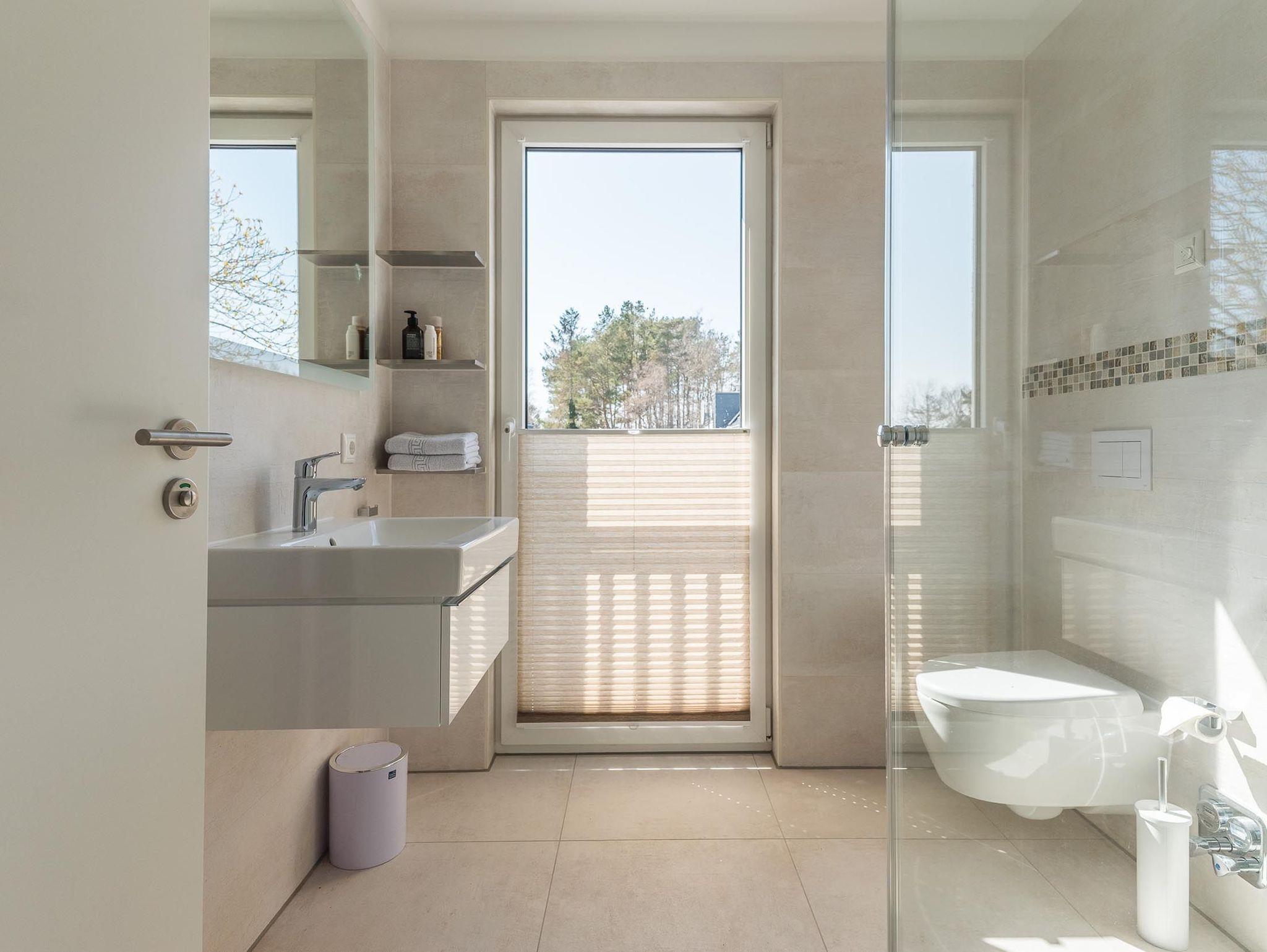 Das modern eingerichtete Badezimmer ist mit einer hochwertigen Dusche ausgestattet. Ein weiteres Schmuckstück des Penthouses ist die eigene Sauna.