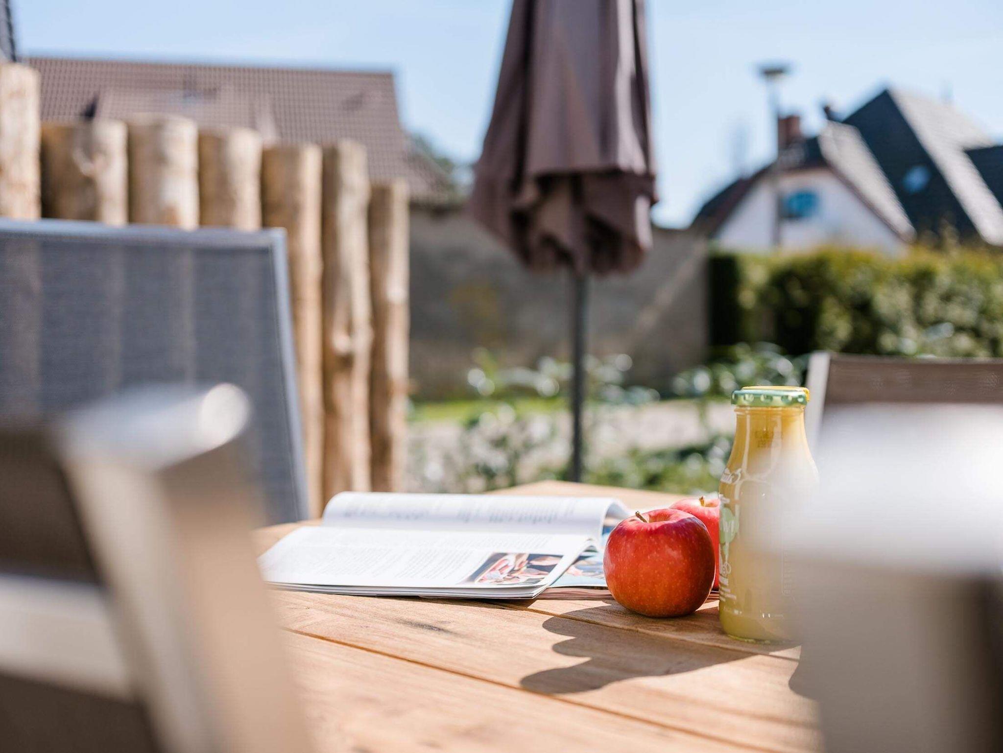 Es ist detailverliebt und mit viel maritimem Charme, eingerichtet. Der geschützte und begrünte Außenbereich steht für Sie zur Verfügung. Das Erdgeschoss gliedert sich in einen geräumigen Wohn- und Essbereich mit angrenzender, offener Küche. Eine vielseitig nutzbare Kochinsel lädt zum gemeinsamen Kochen ein und trennt den ausgedehnten Raum in gemütliche Bereiche. Alle Annehmlichkeiten des modernen Lifestyles, von Herd über Mikrowelle und Spülmaschine bis hin zu Kühlschrank mit Gefrierfach sind vorhanden. Ein großer Kamin wärmt an kalten Tagen und sorgt für eine romantische Stimmung. Das geschmackvoll ausgestattete Badezimmer mit Dusche und einer anliegenden Sauna bieten ein Flair zum Wohlfühlen.