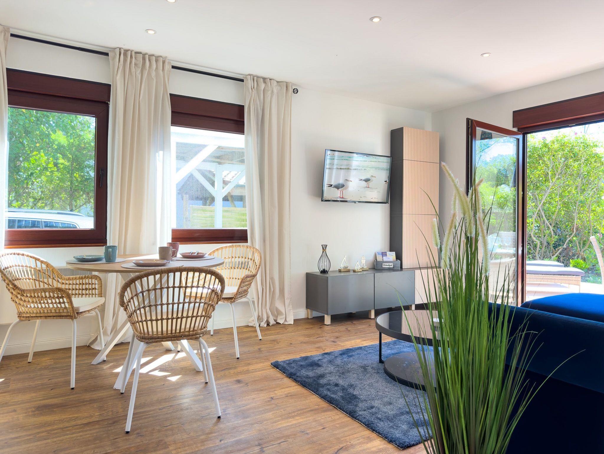 Das Ferienhaus Haus am Strand empfängt Sie mit einer warmen und einladenden Atmosphäre. Der helle und moderne Wohn- und Essbereich mit großen Fenstern bietet einen wunderbaren Blick ins Grüne und lädt zu entspannten Abenden ein sei es bei einem guten Buch oder einem gemeinsamen Spieleabend. Die offene Küche ist vollständig ausgestattet, sodass Sie mühelos köstliche Mahlzeiten für Ihre Liebsten zubereiten können.