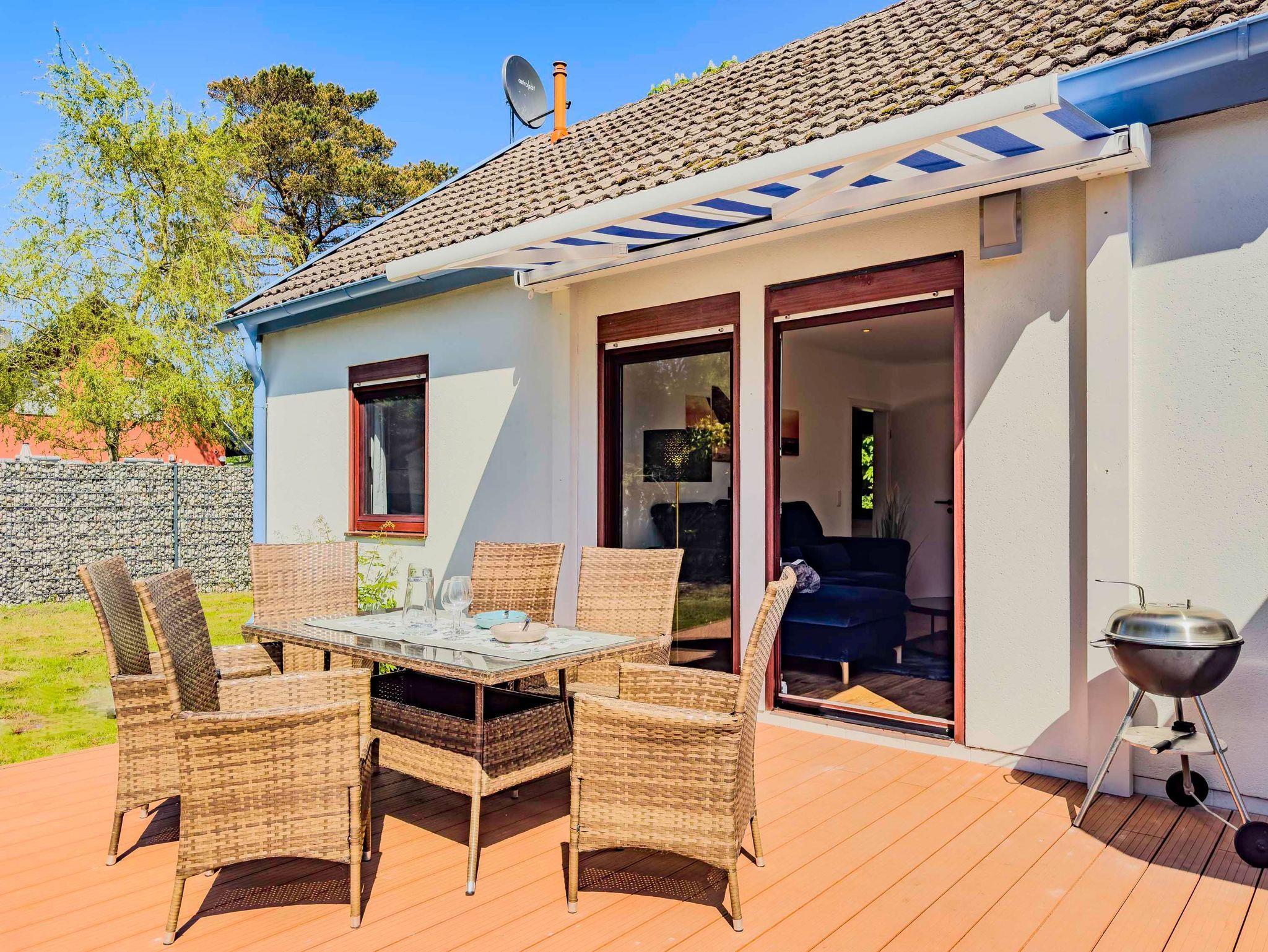 Nach einem erlebnisreichen Tag an der frischen Ostseeluft lädt die großzügige Sonnenterrasse mit bequemen Liegen, Grill und stilvollem Essbereich zum Verweilen ein. Der gepflegte Garten mit einladender Wiese ist perfekt, um die Seele baumeln zu lassen ob beim Frühstück in der Sonne oder nach einem erlebnisreichen Tag an der Ostsee.