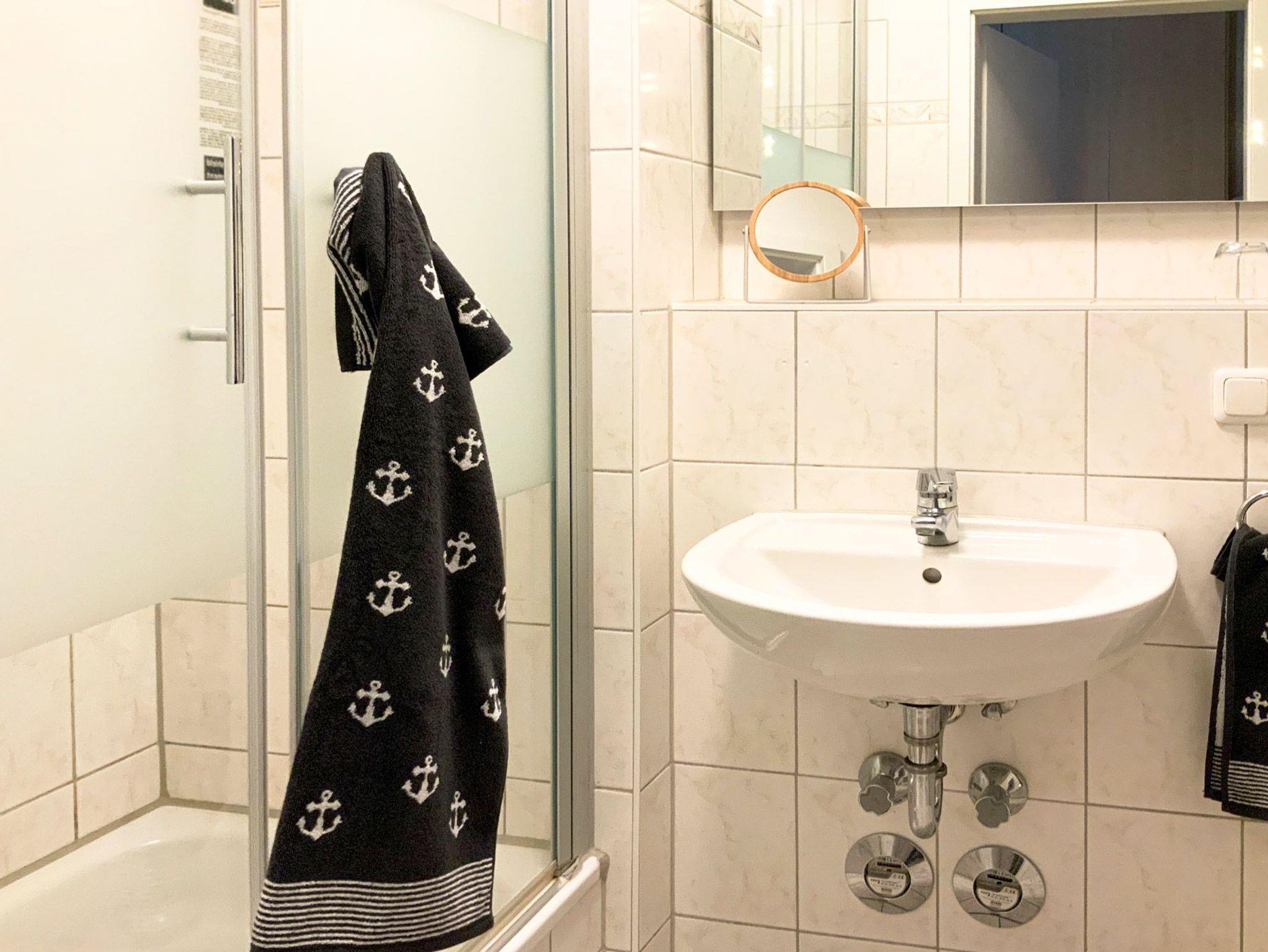 • Badezimmer: Modernes Bad mit Dusche und Haartrockner