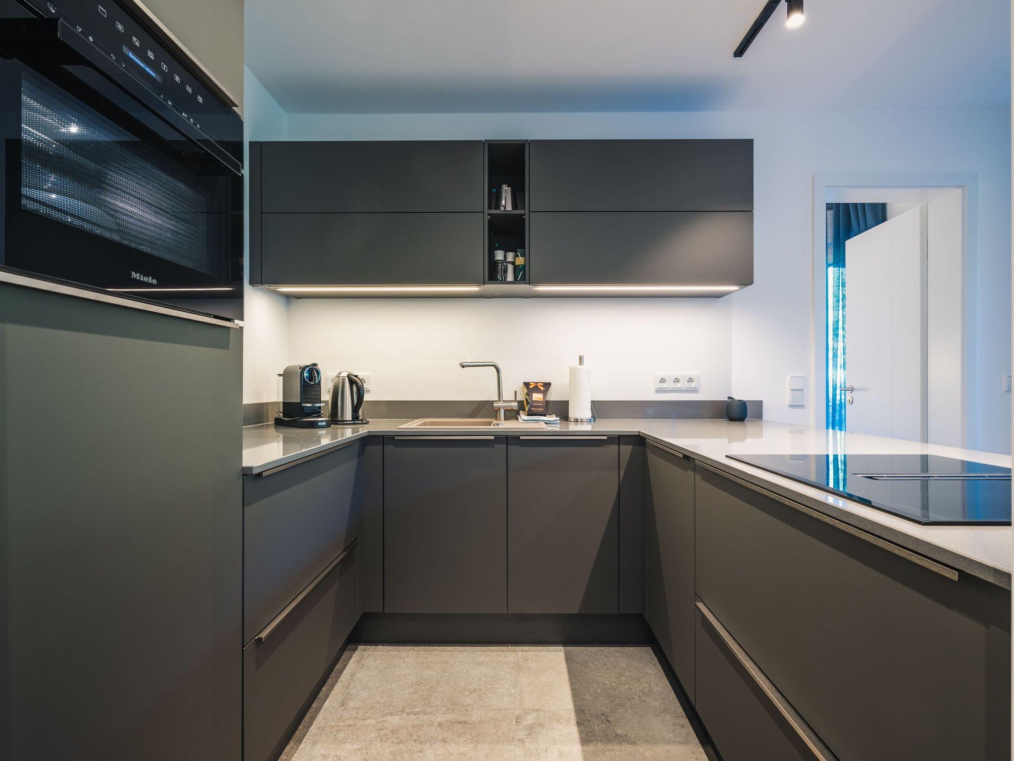 • Offene, voll ausgestattete Einbauküche mit hochwertigen Markengeräten