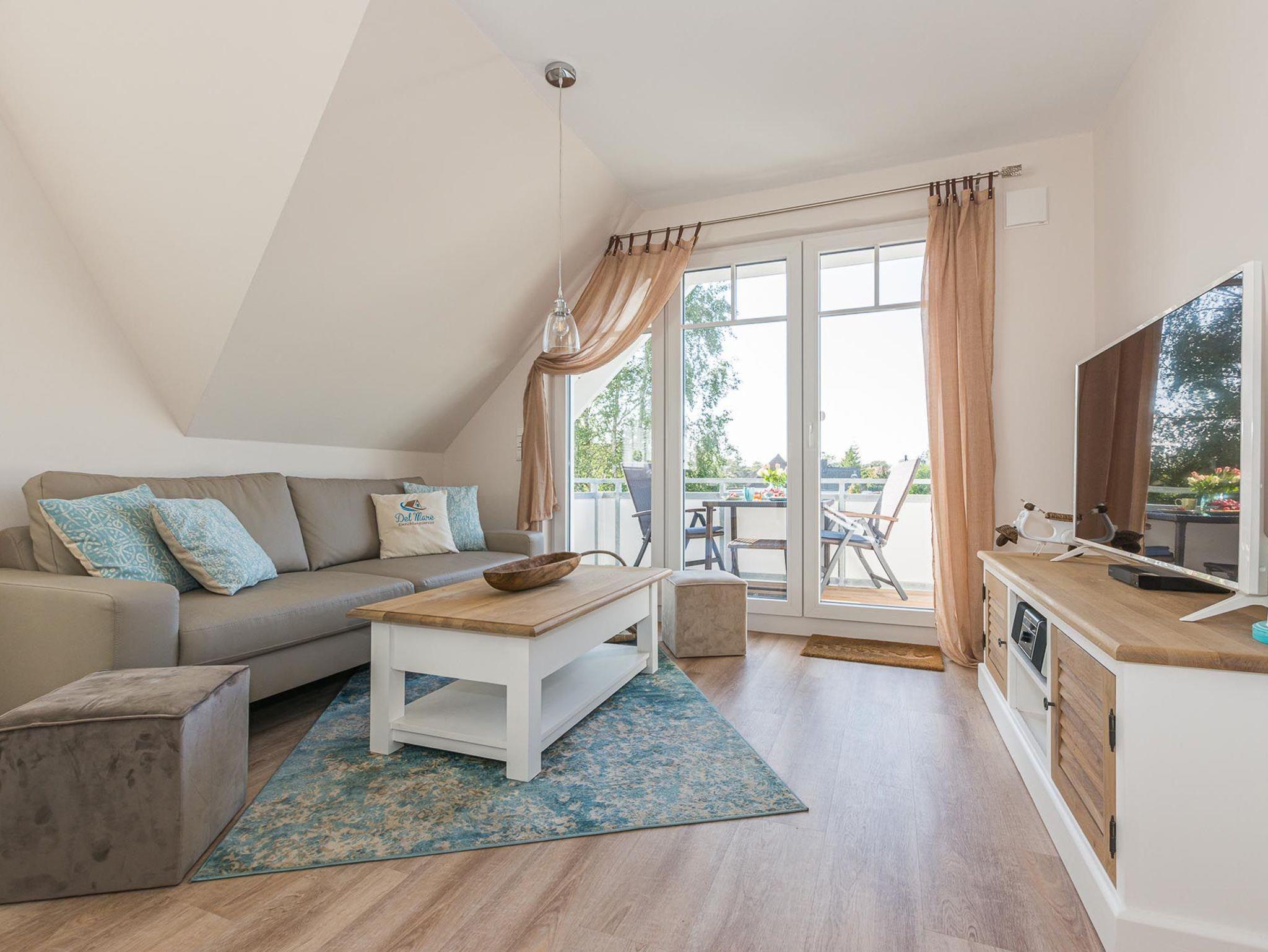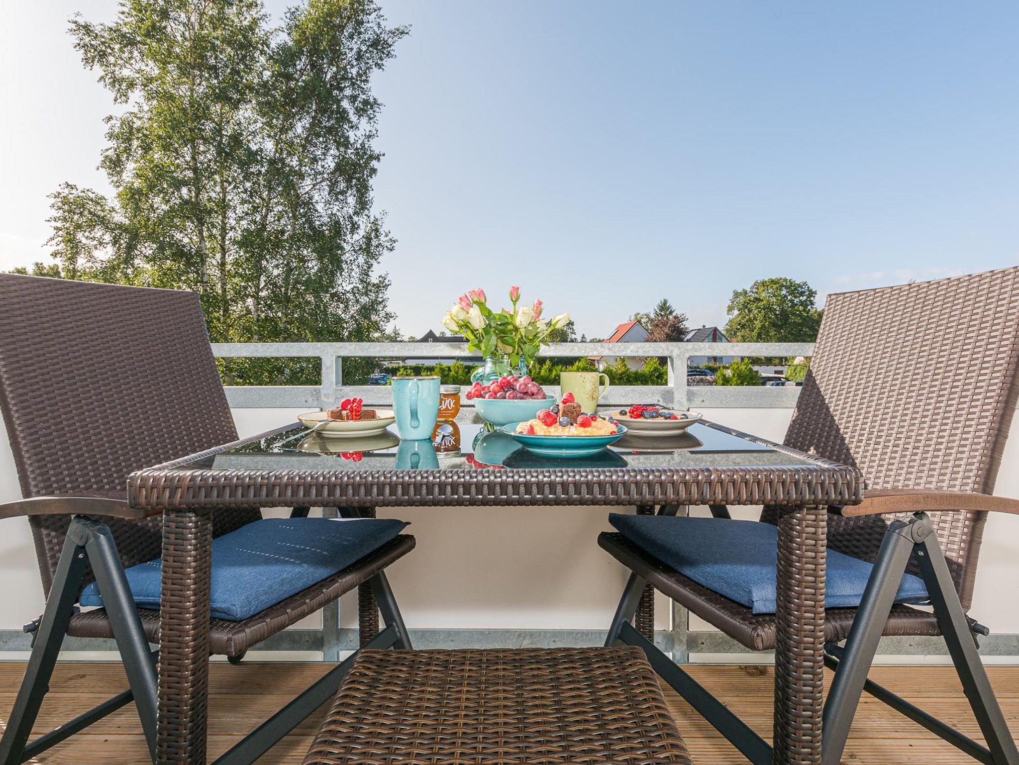 Vom Wohnbereich aus, betreten Sie den Balkon- lassen Sie sich vm Ostseewind den Kopf frei pusten und atmen Sie die frische Luft ein.