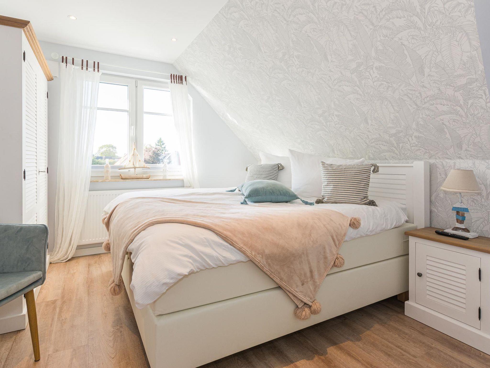 Im Schlafzimmer finden Sie in einem Boxspringbett (180x200) erholsamen Schlaf.